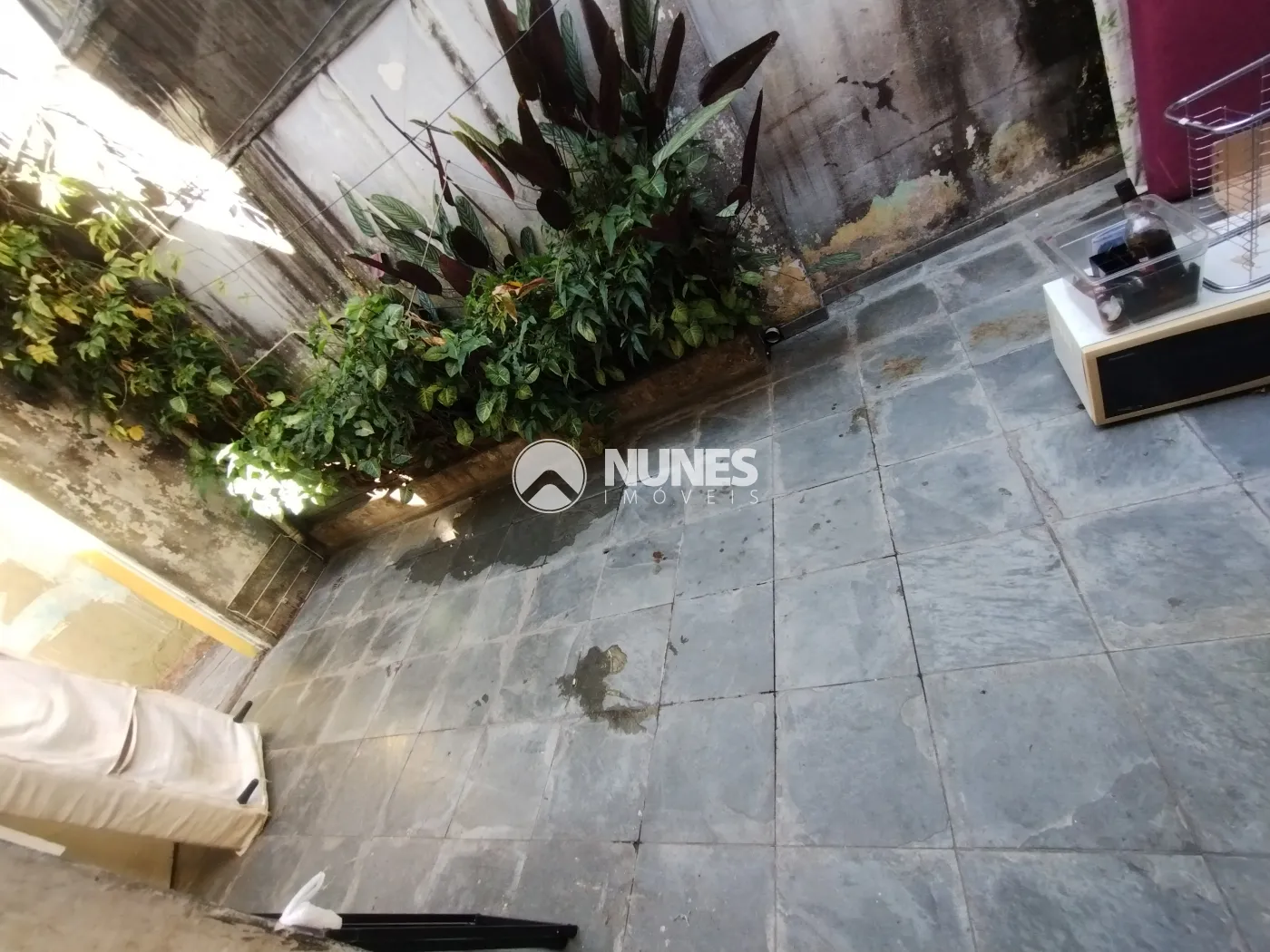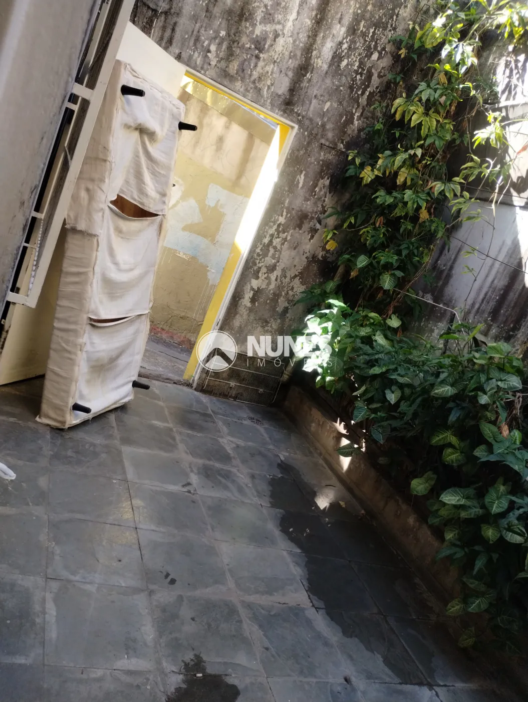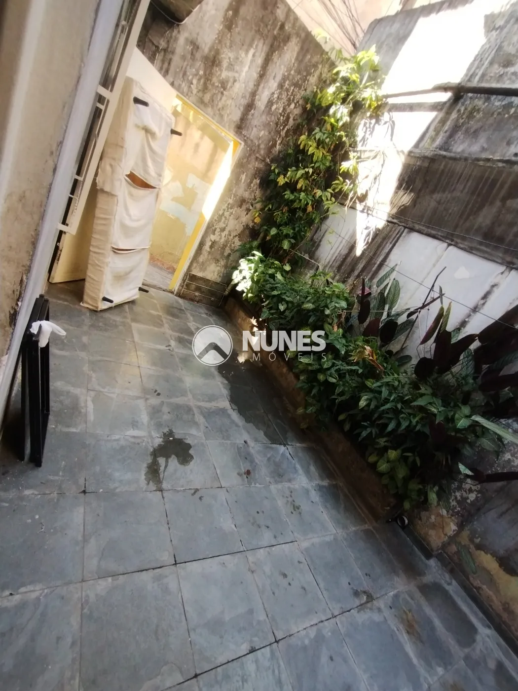 Quintal frente descoberto com canteiro lateral