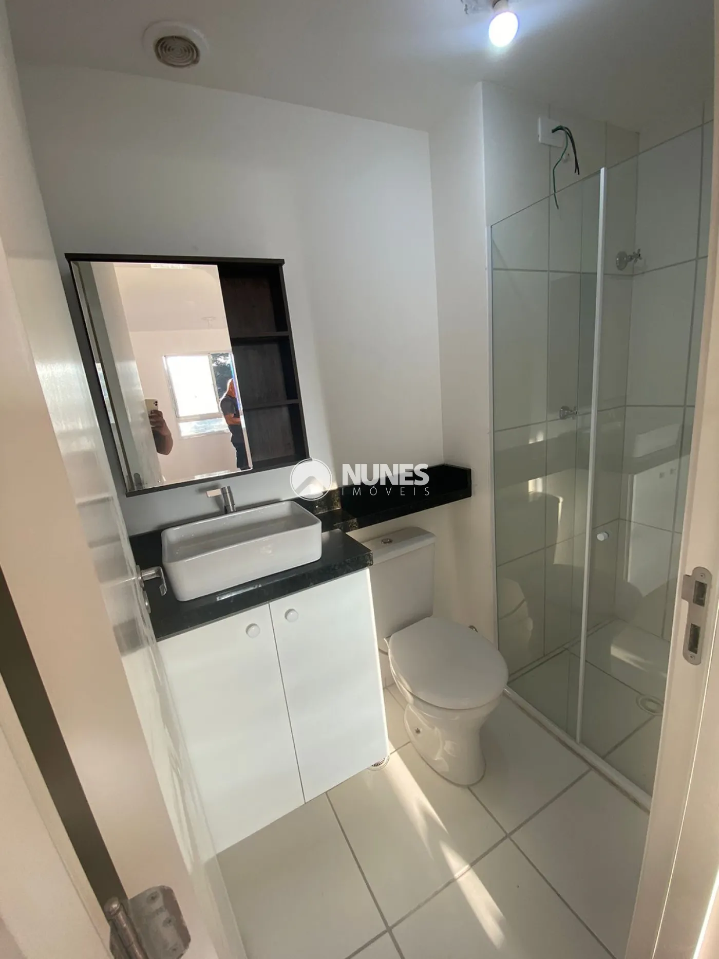 Banheiro c/box de vidro e gabinete (piso cerâmica)