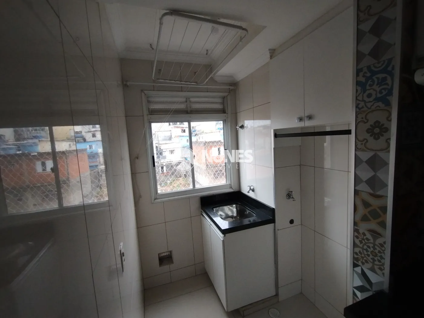 Área de serviço coberta com armário (piso porcelanato)