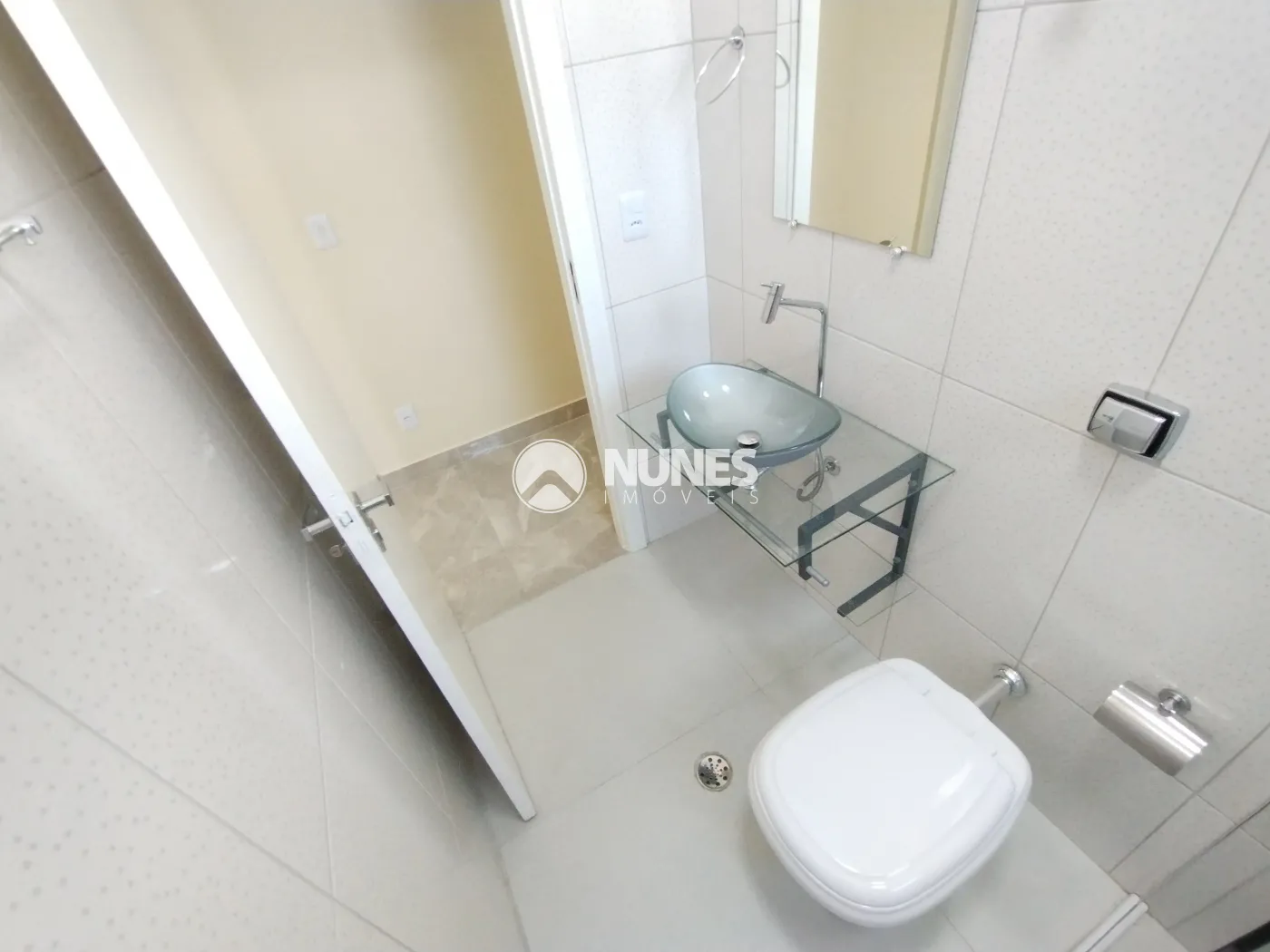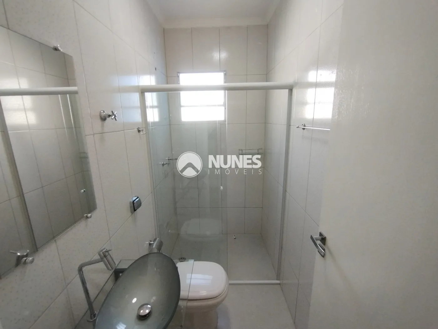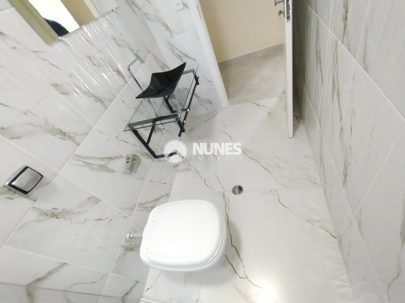 Banheiro social 5,22 m² com porcelanato e box de vidro temperado