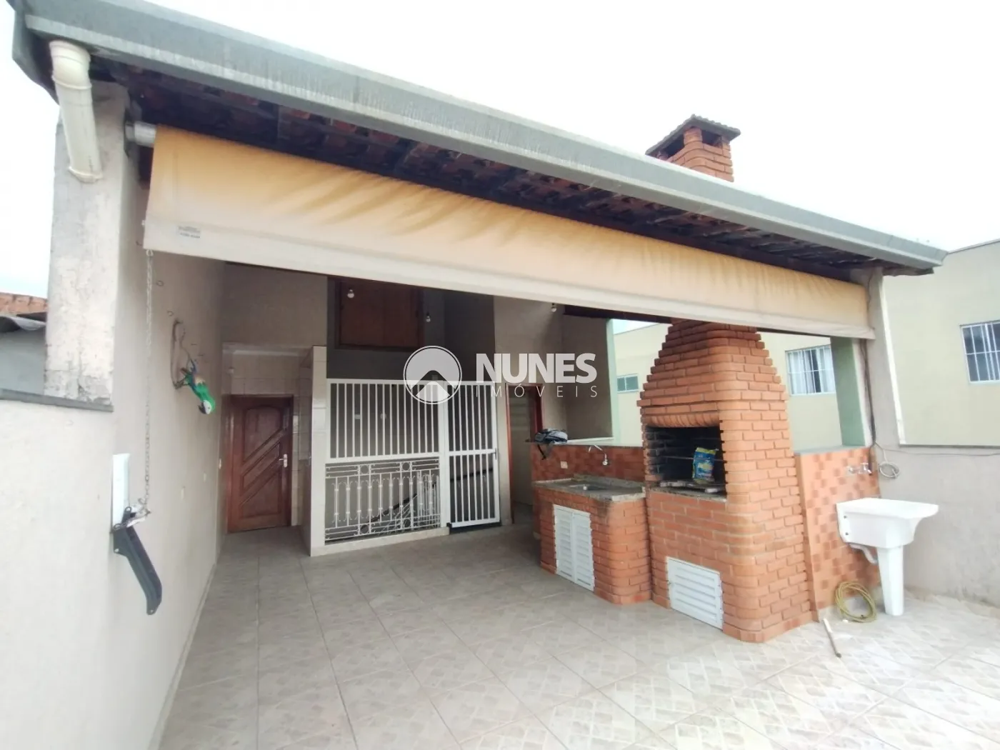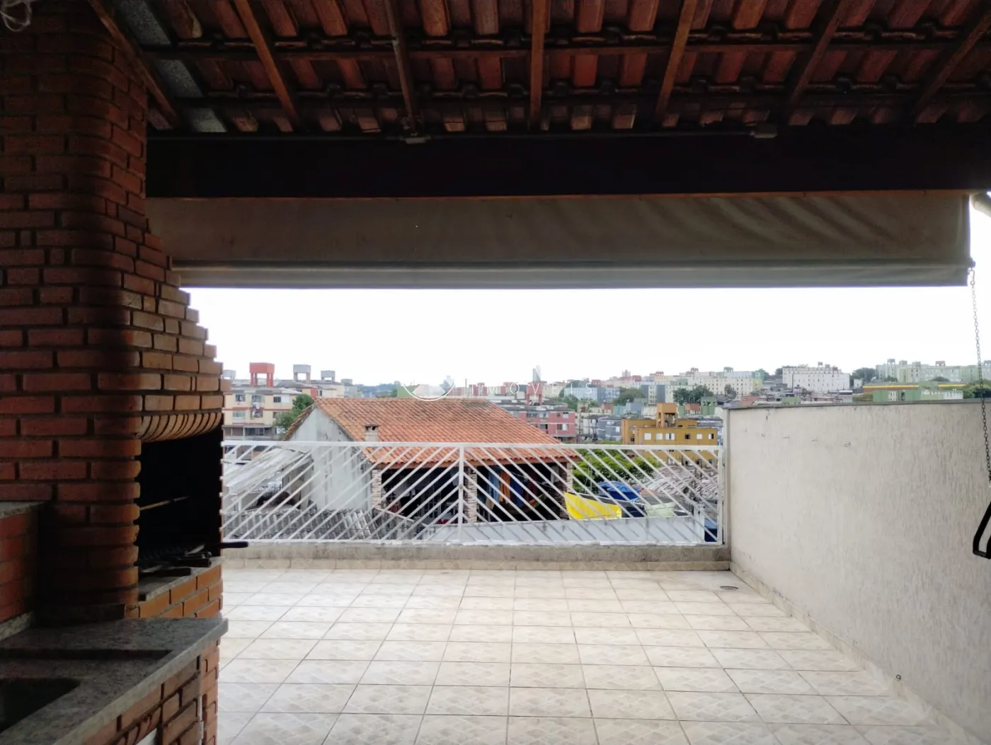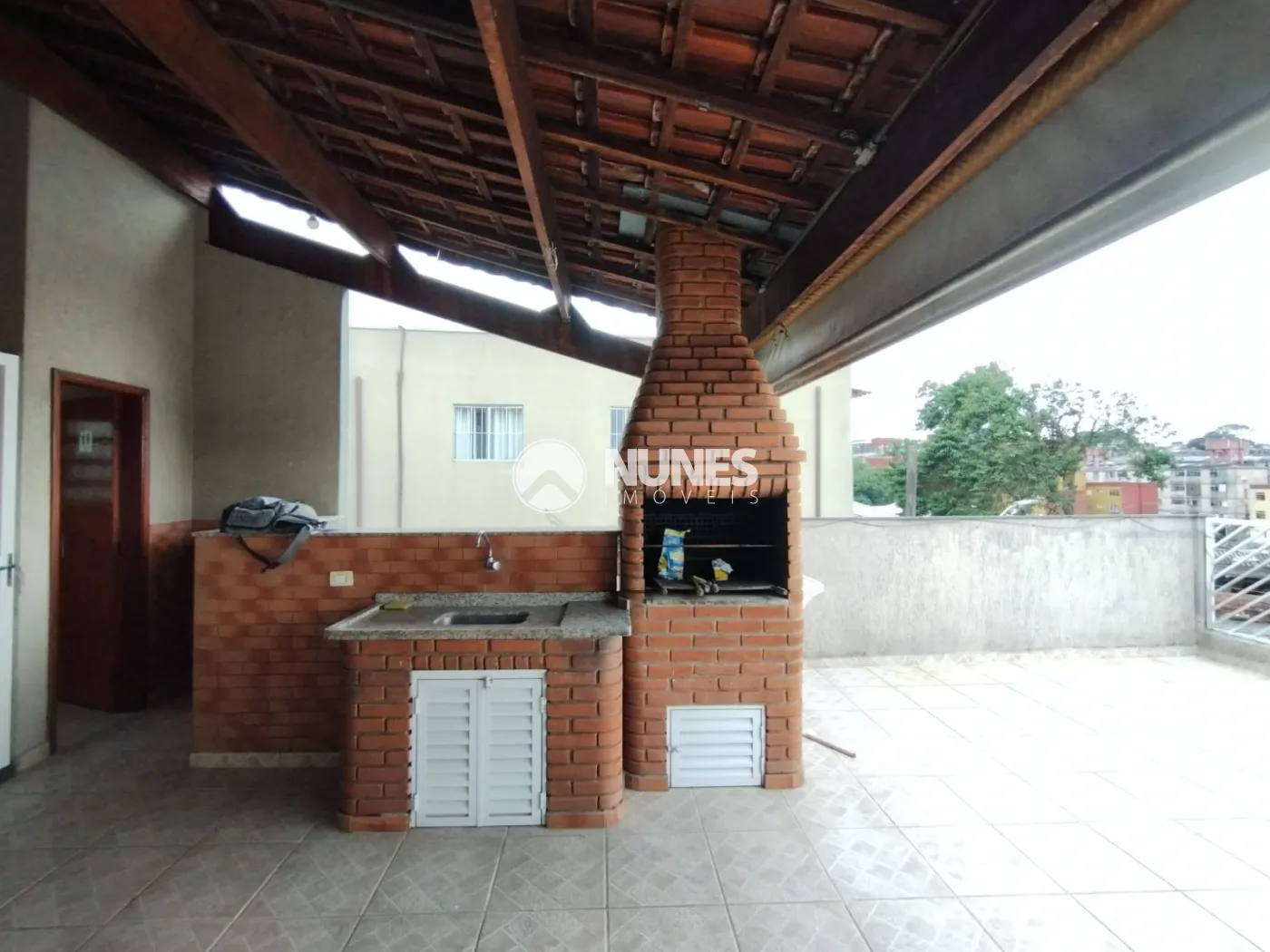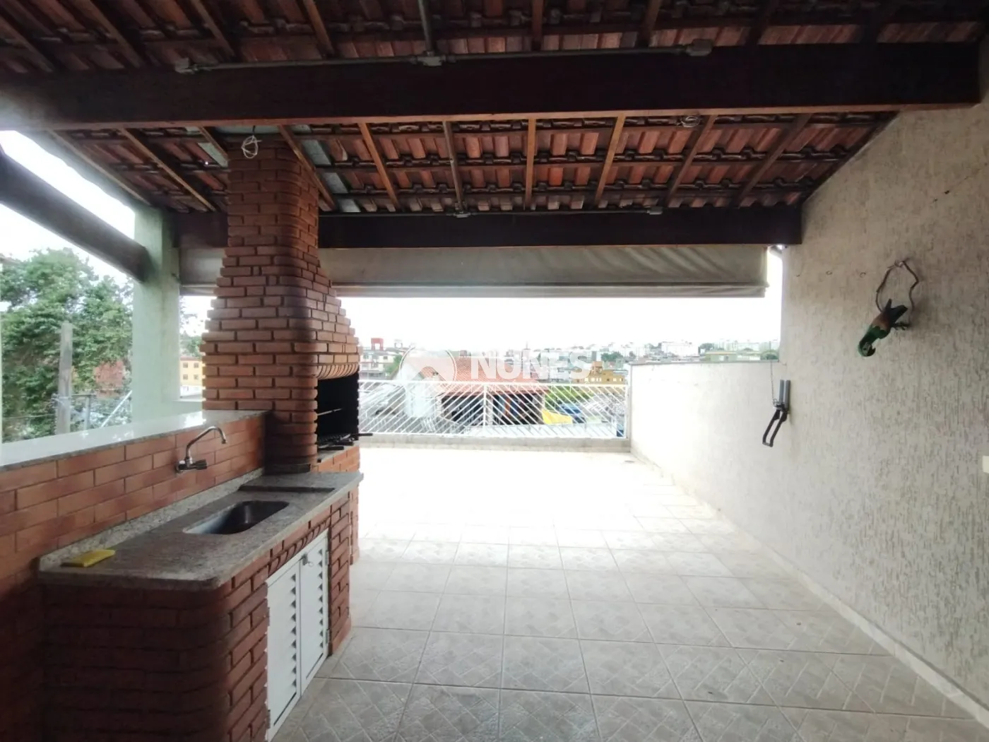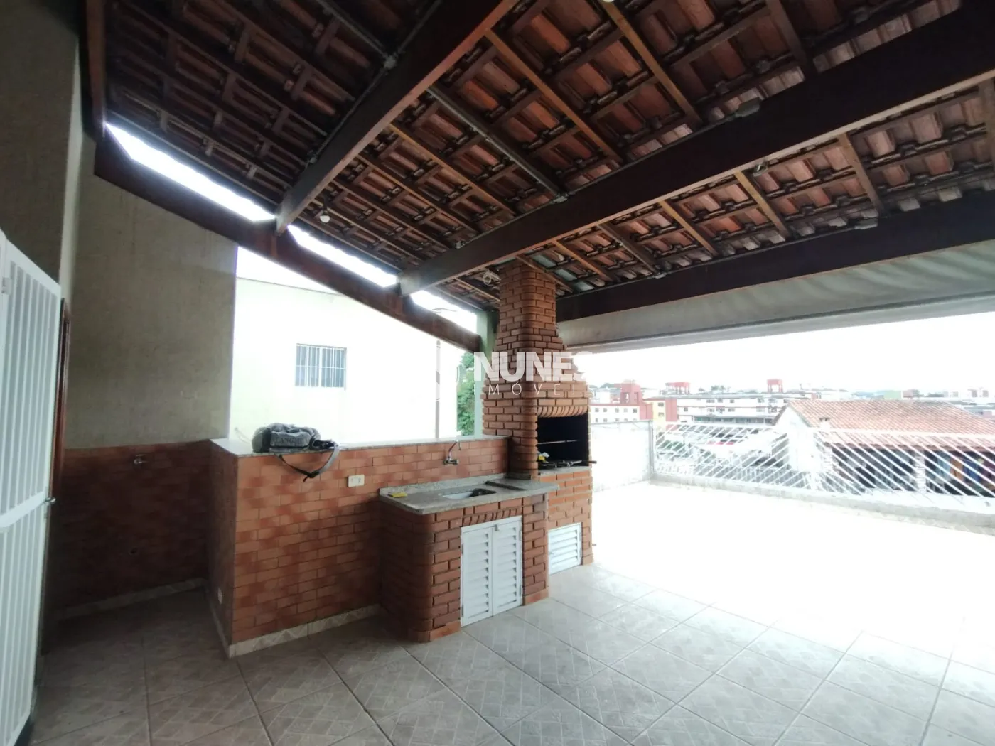 Varanda: com churrasqueira e banheiro com piso de cerâmica
