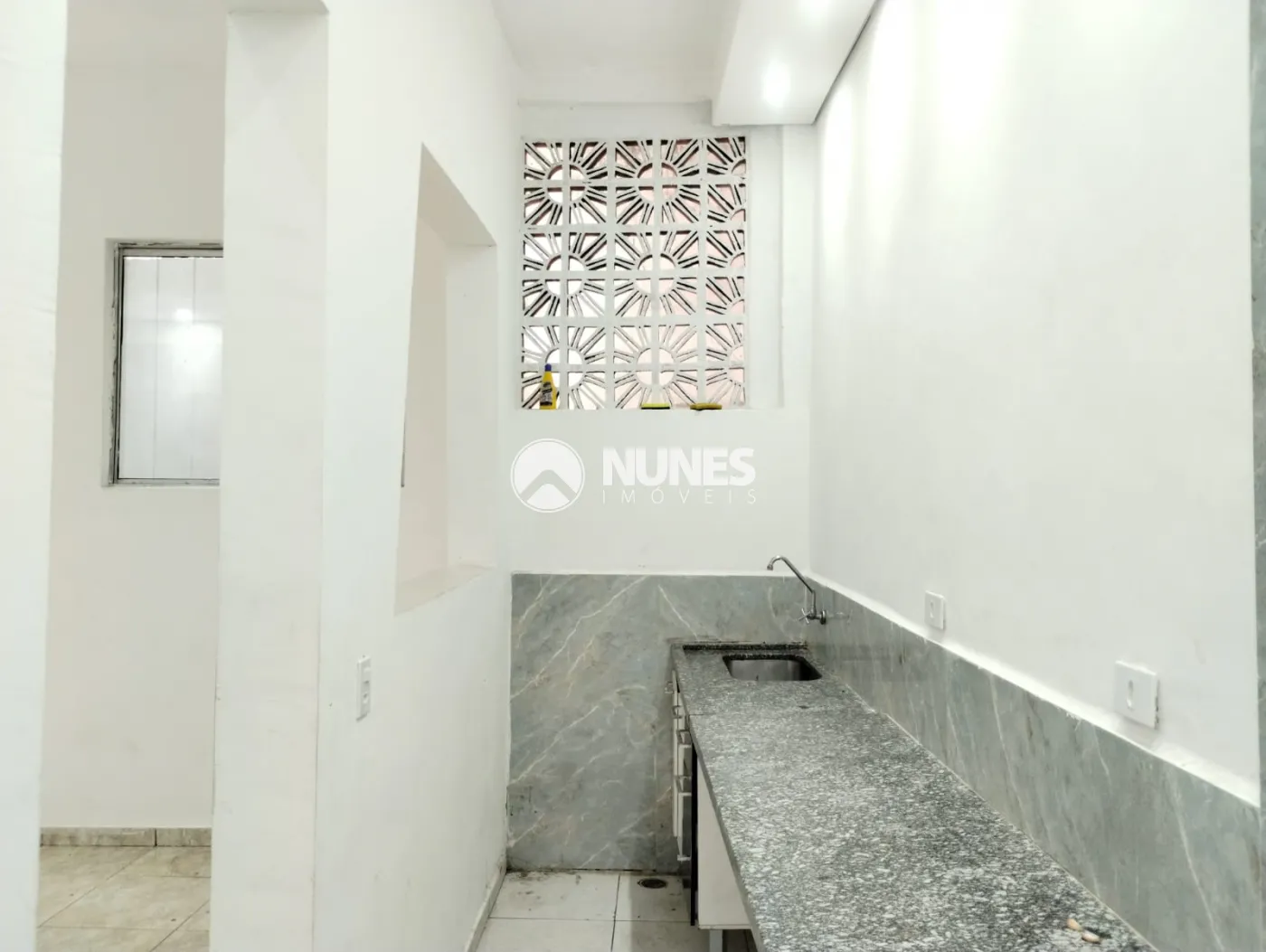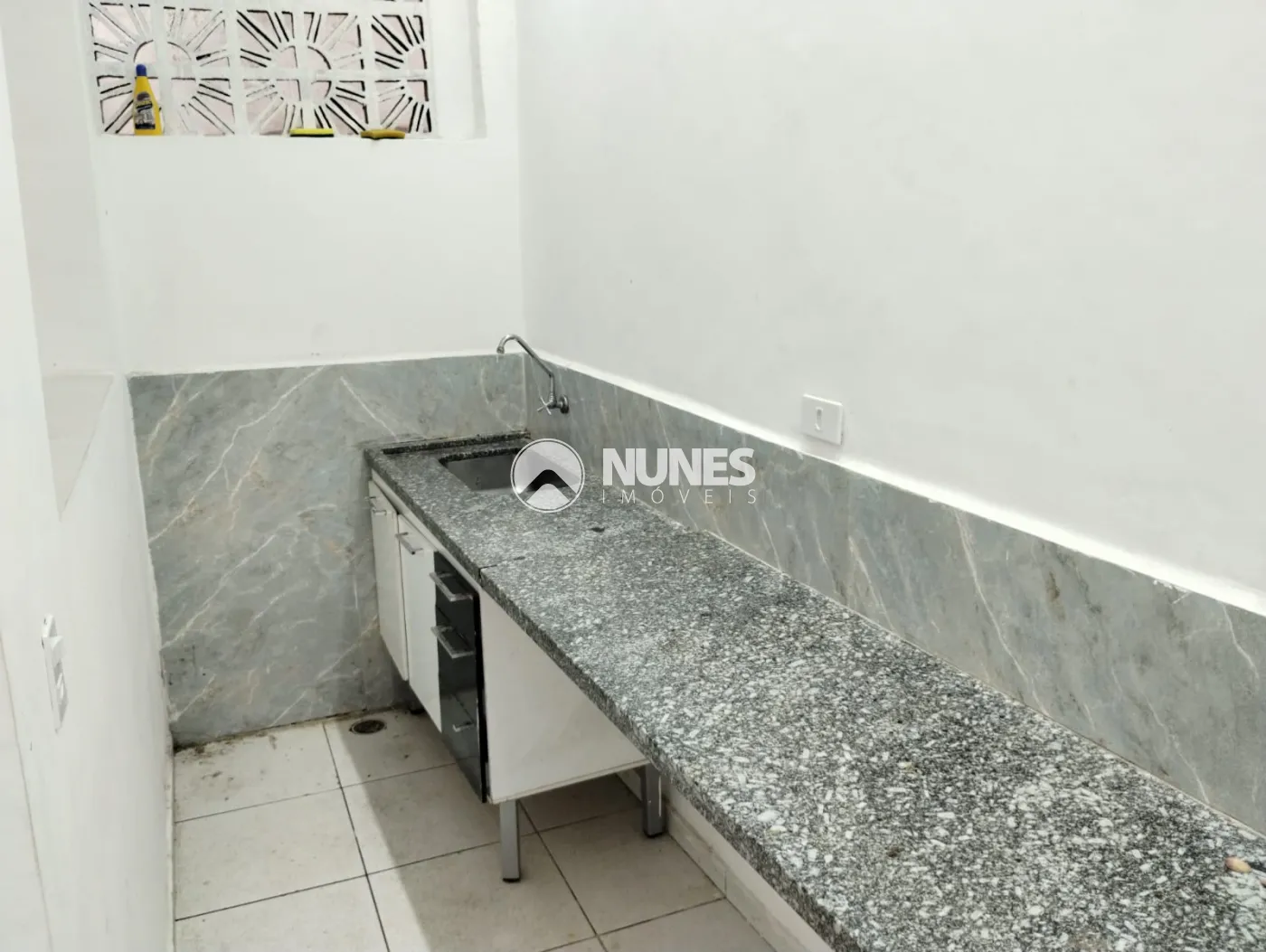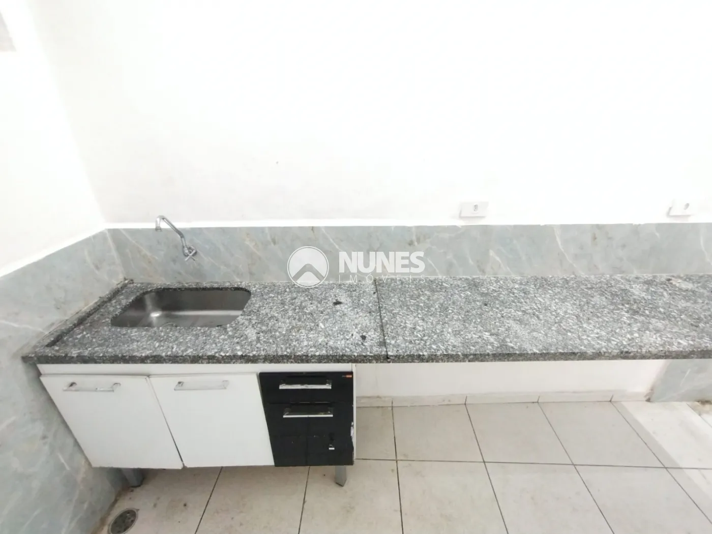 Cozinha com pia balcão de granito e gabinete (piso cerâmica)
