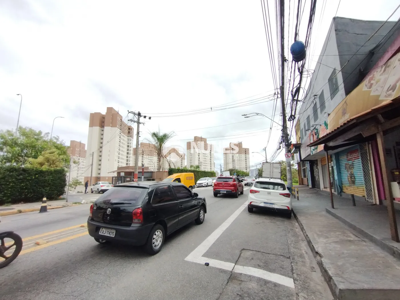 Avenida Movimentada com Comércios.