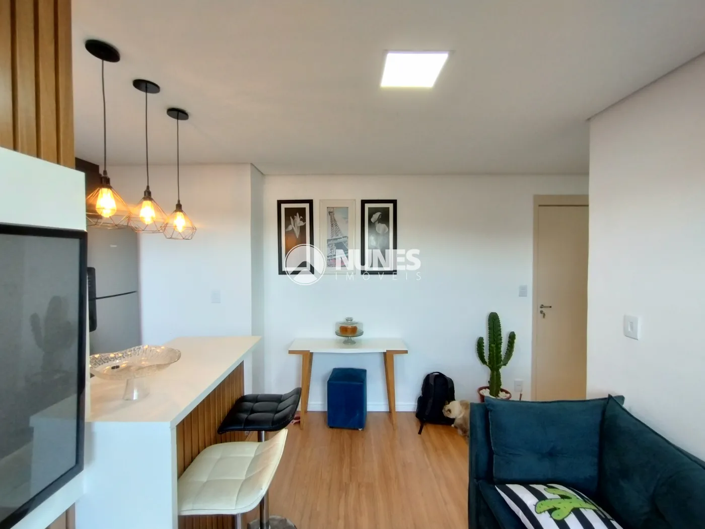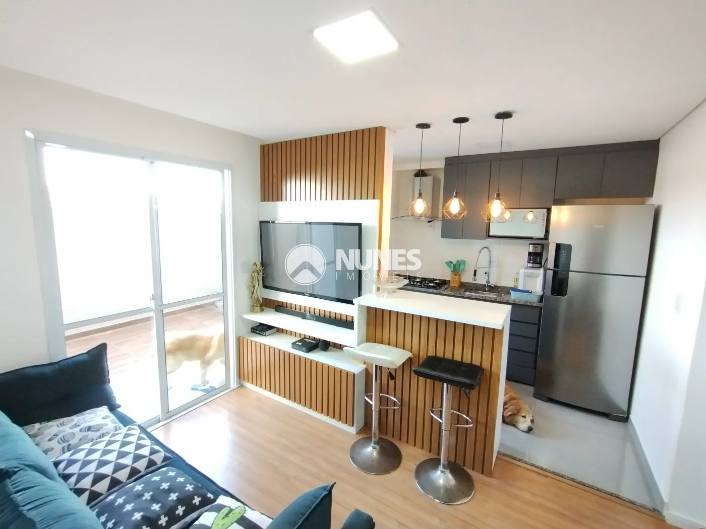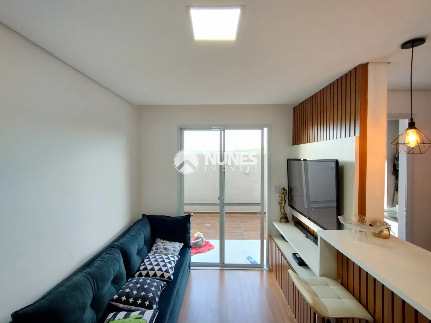Sala c/ painel, rack de tv e balcão (piso laminado)