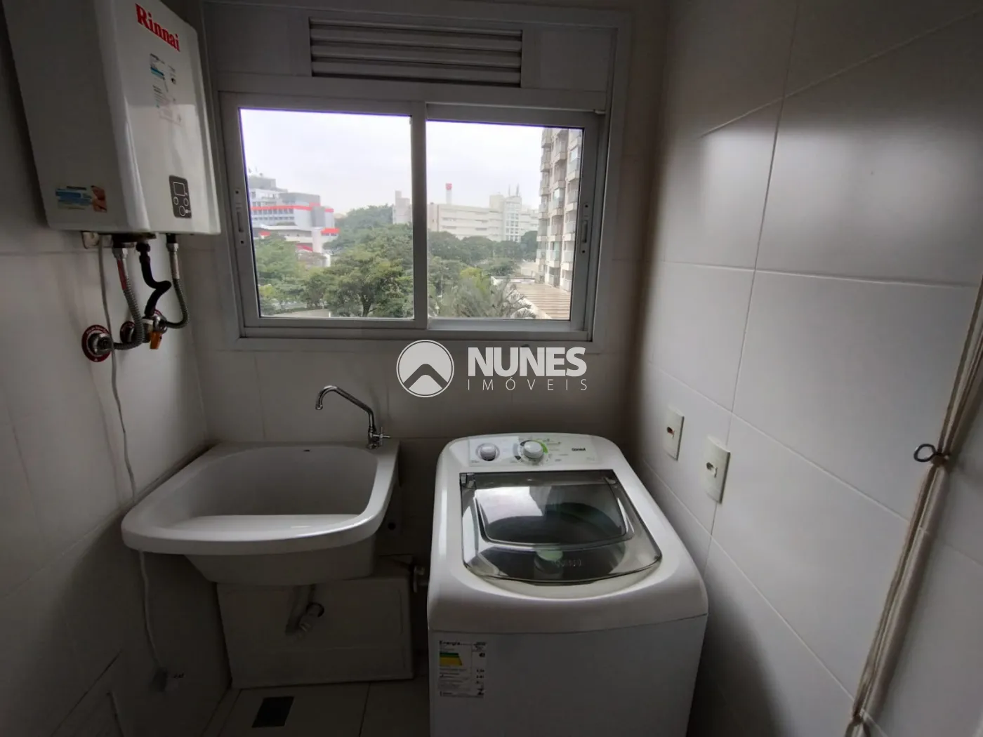 Área de serviço com máquina de lavar roupa (piso cerâmica)