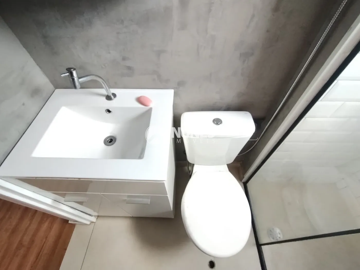 01 Banheiro com box e gabinete (piso porcelanato)