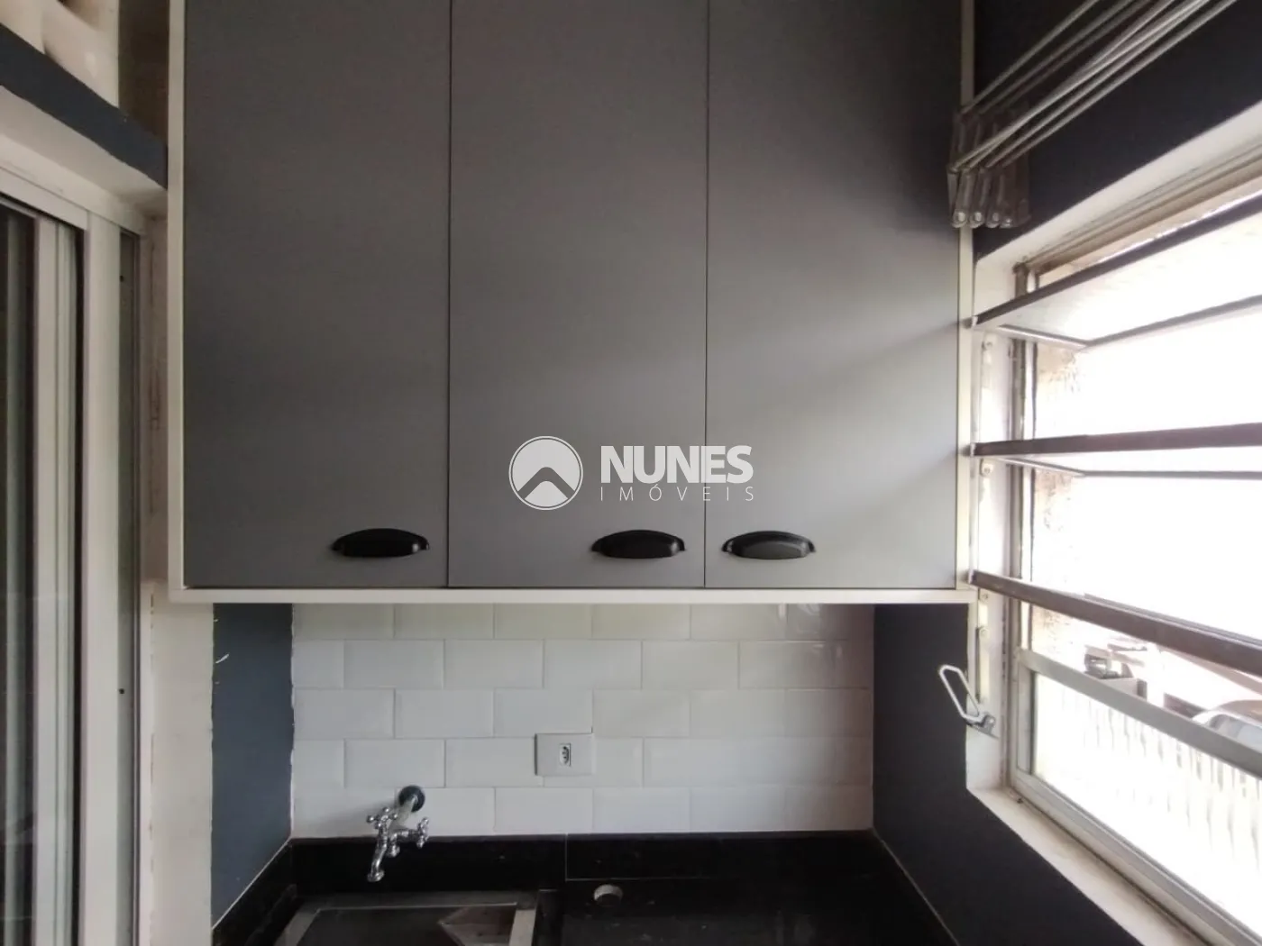 Lavanderia com armário planejado (piso porcelanato)