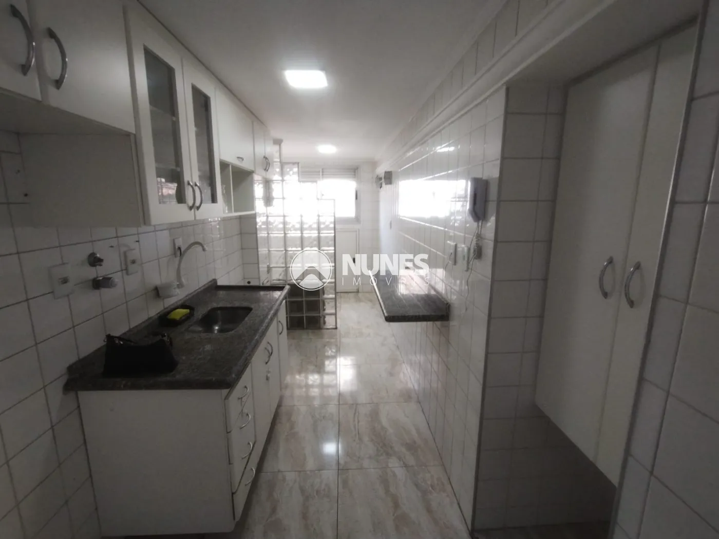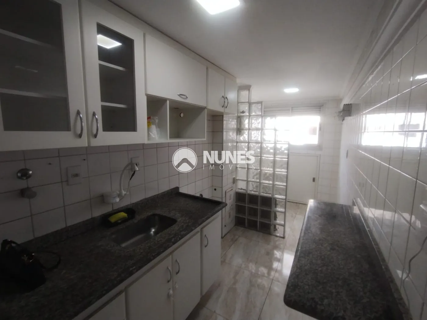 Cozinha com armários e bancada (piso porcelanato)