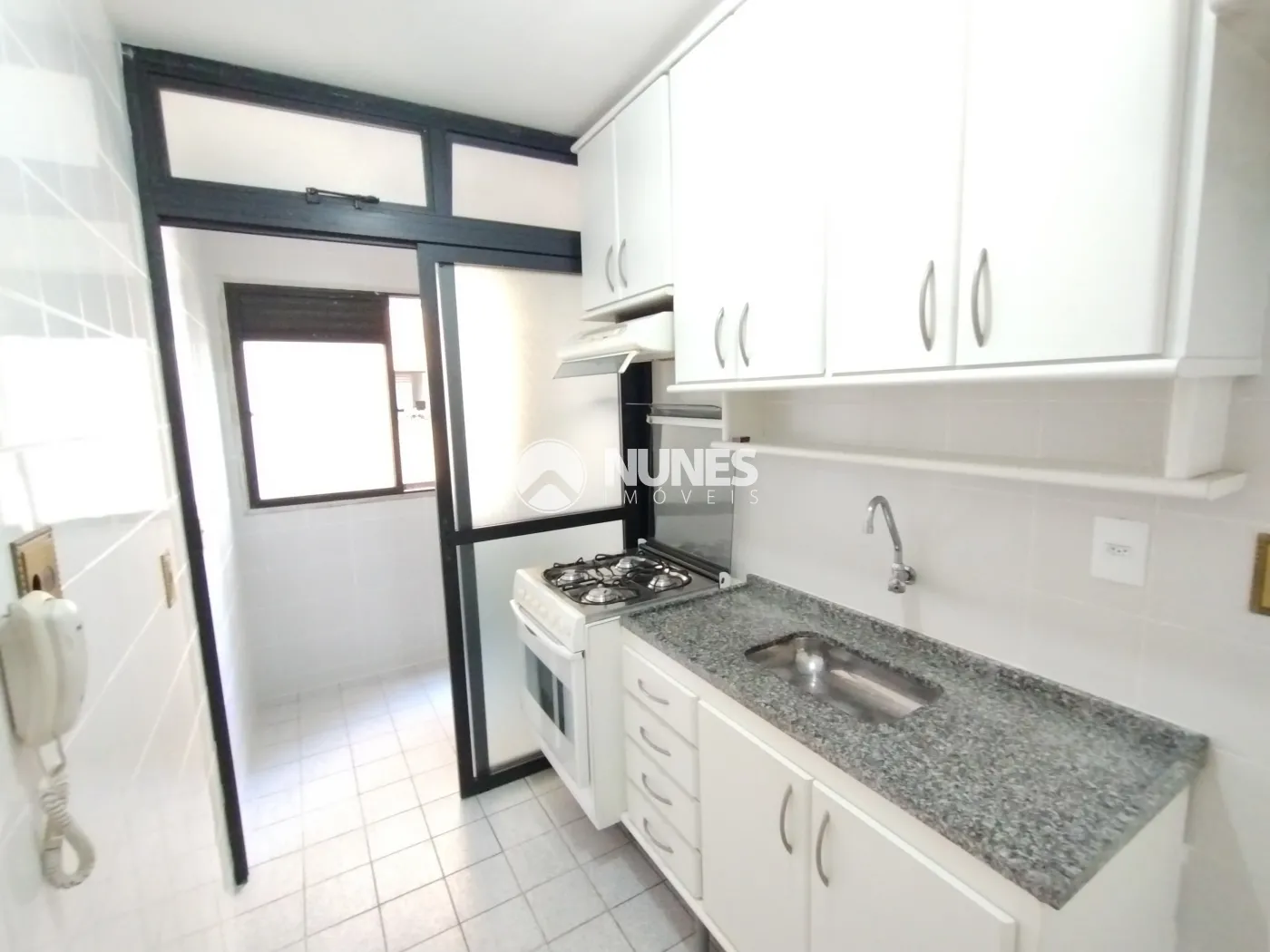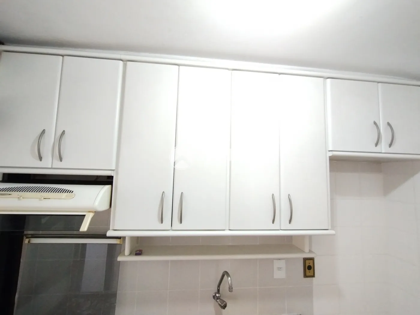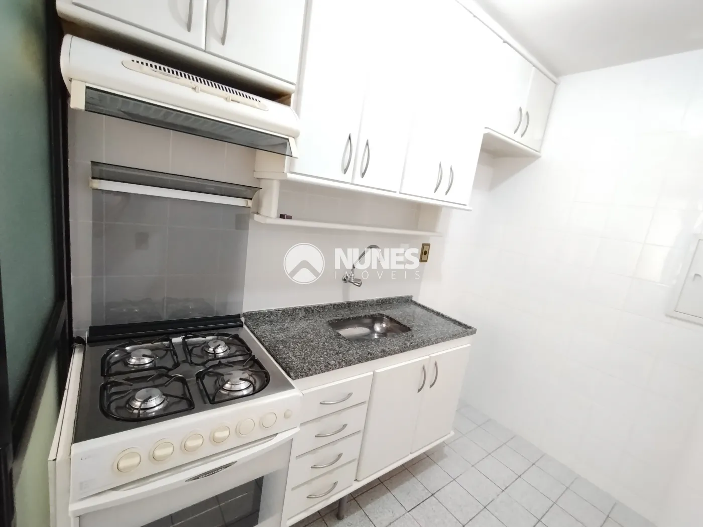 Cozinha com armário e fogão (piso cerâmica )