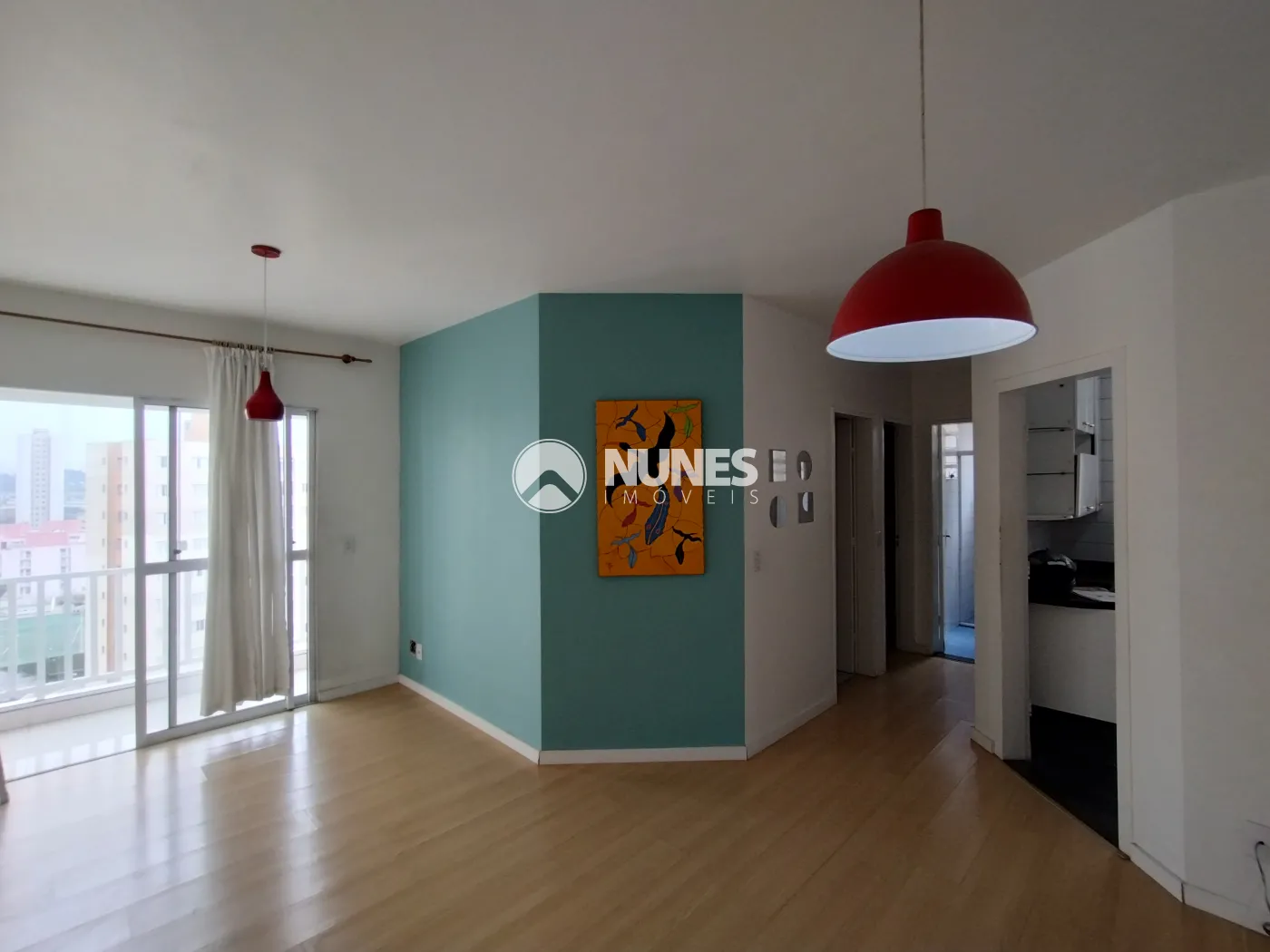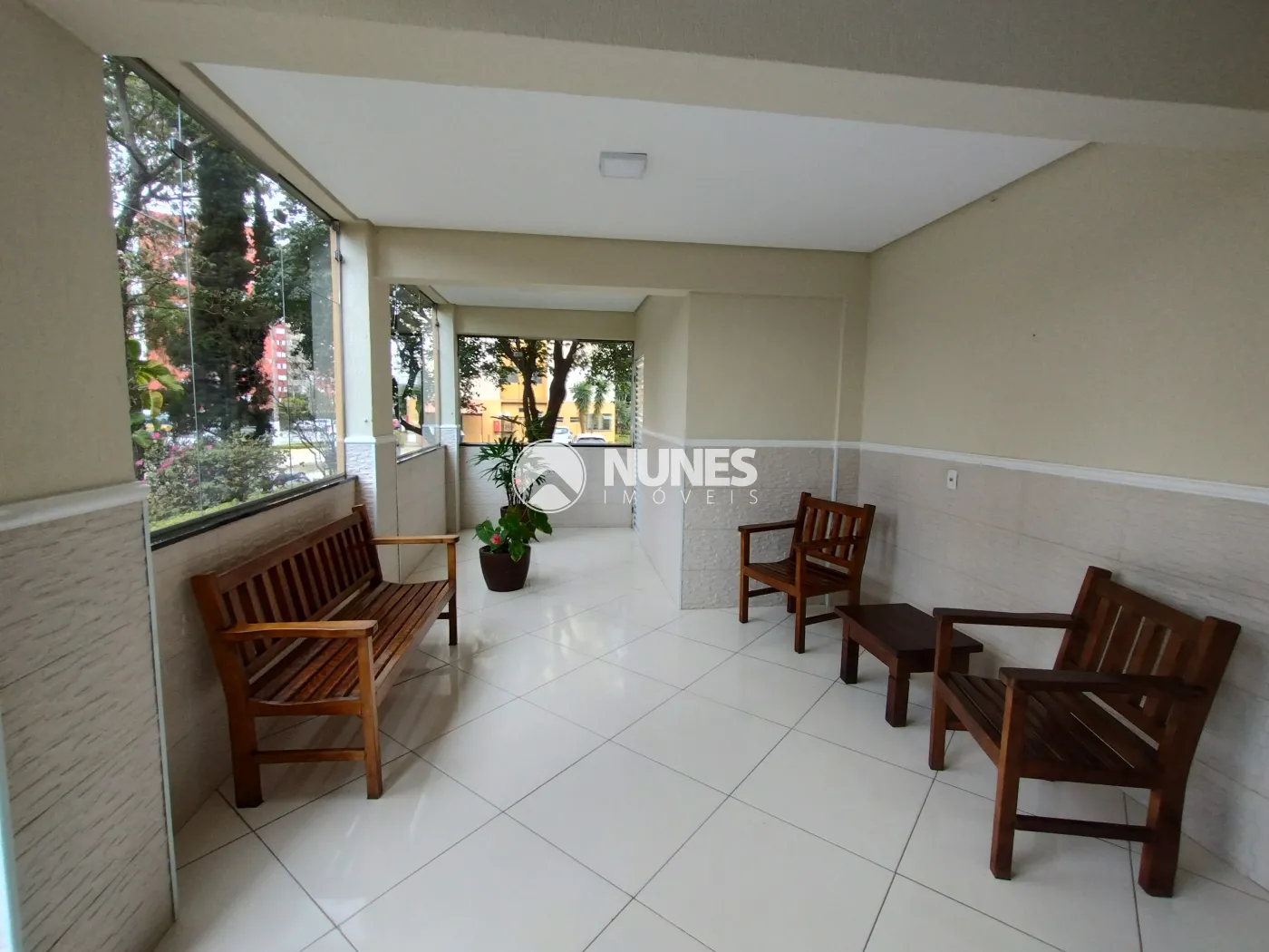 Sala com sacada envidraçada (Piso porcelanato)