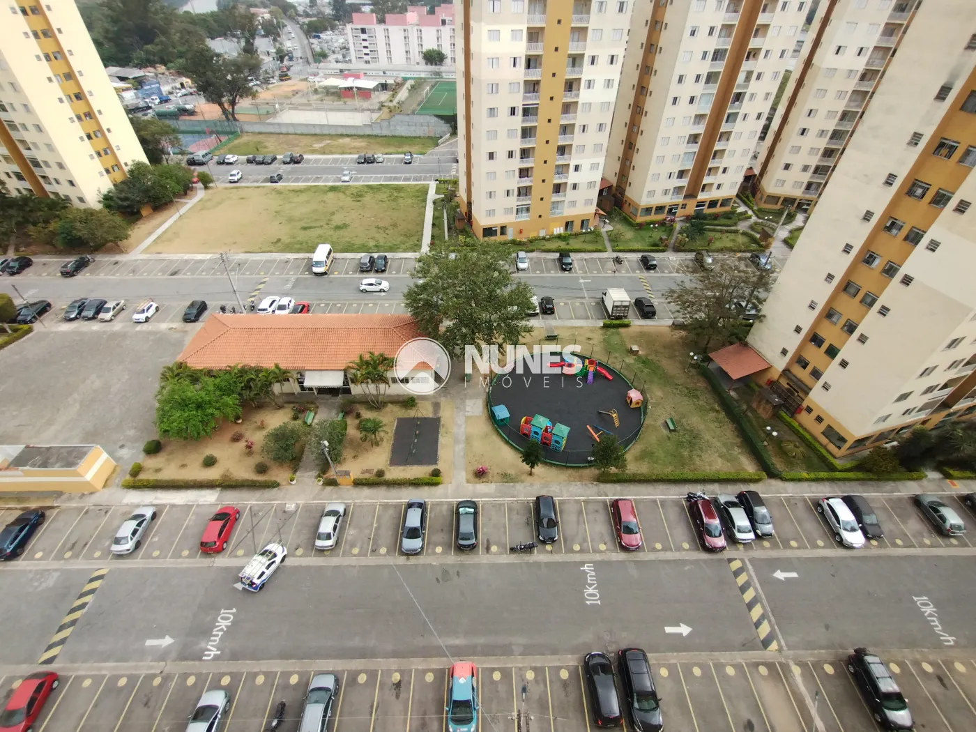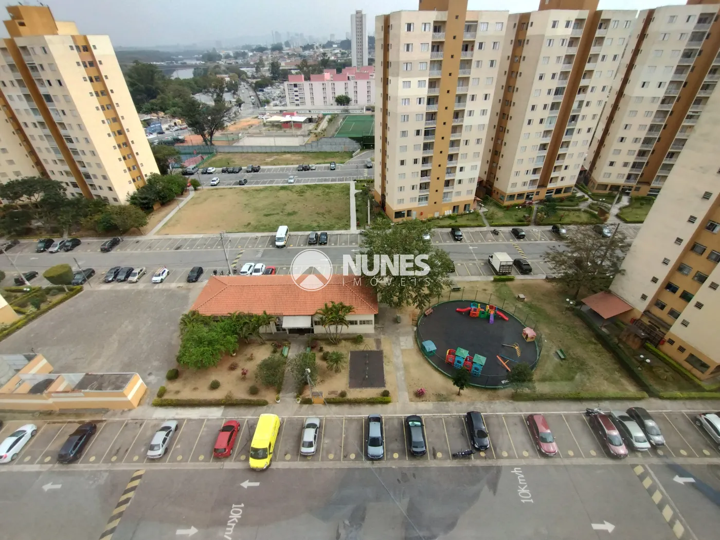 Condomínio oferece portaria 24 horas, academia, quadra esportiva, salão de festas, gás encanado e playground