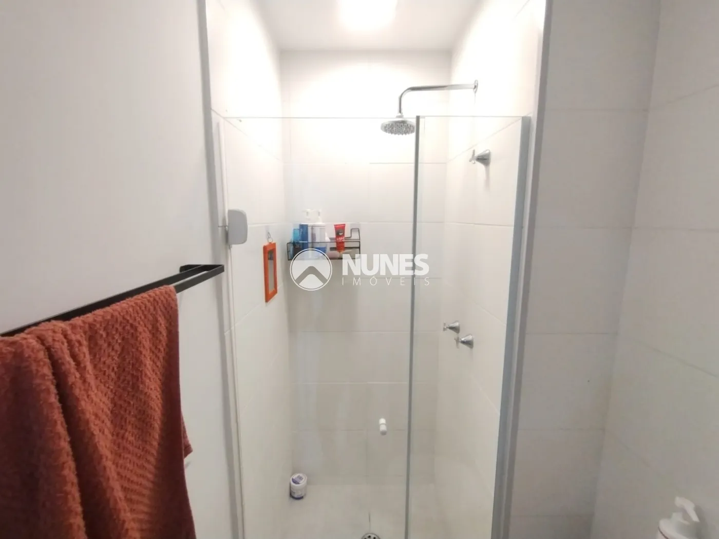 Banheiro com box e armário (piso porcelanato)