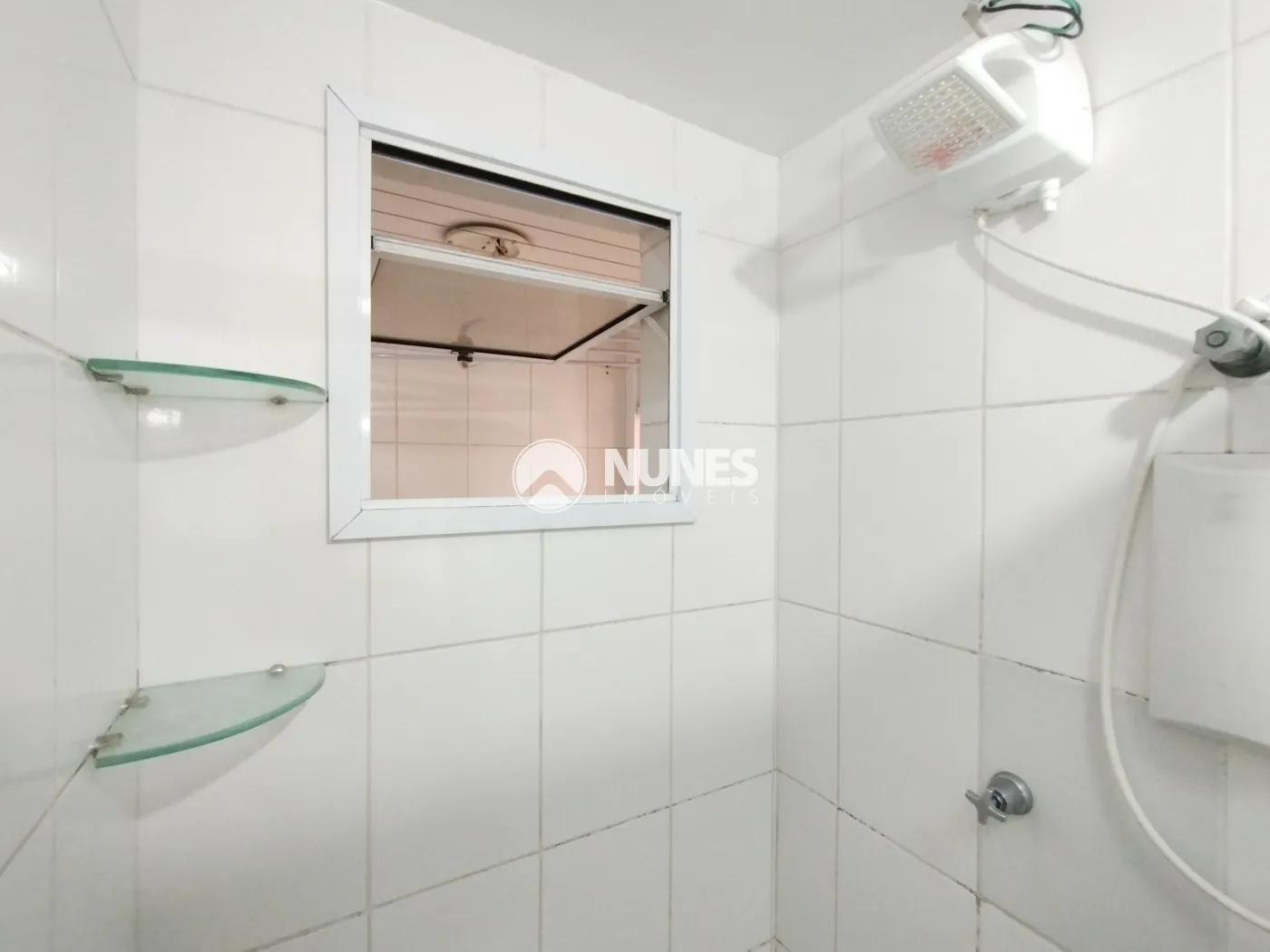 Banheiro: com box e prateleiras (piso cerâmica)