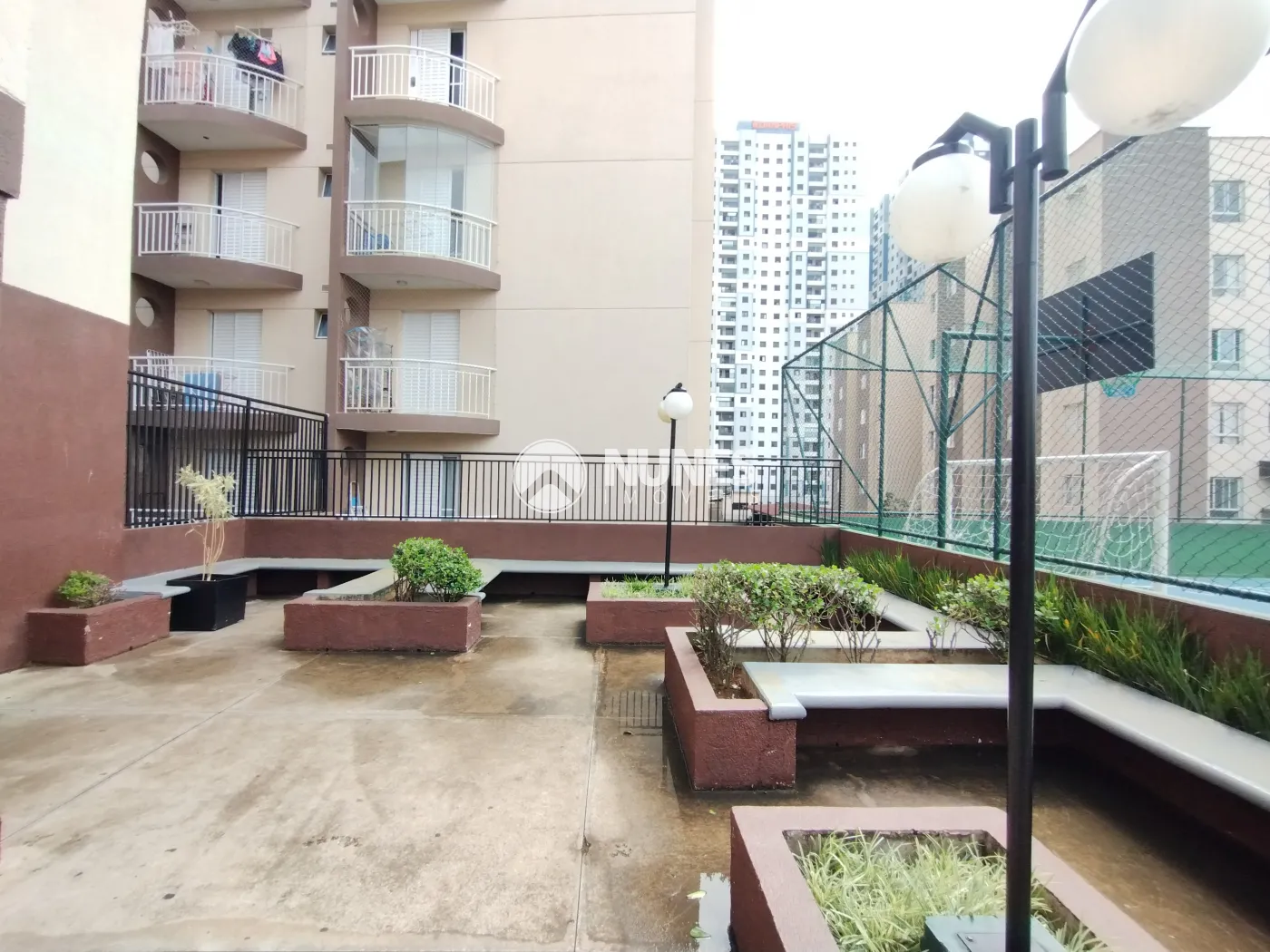 Espaço de lazer: elevador, academia, quadra esportiva, salão de festas, gás encanado, churrasqueira e playground e mercado de auto atendimento.