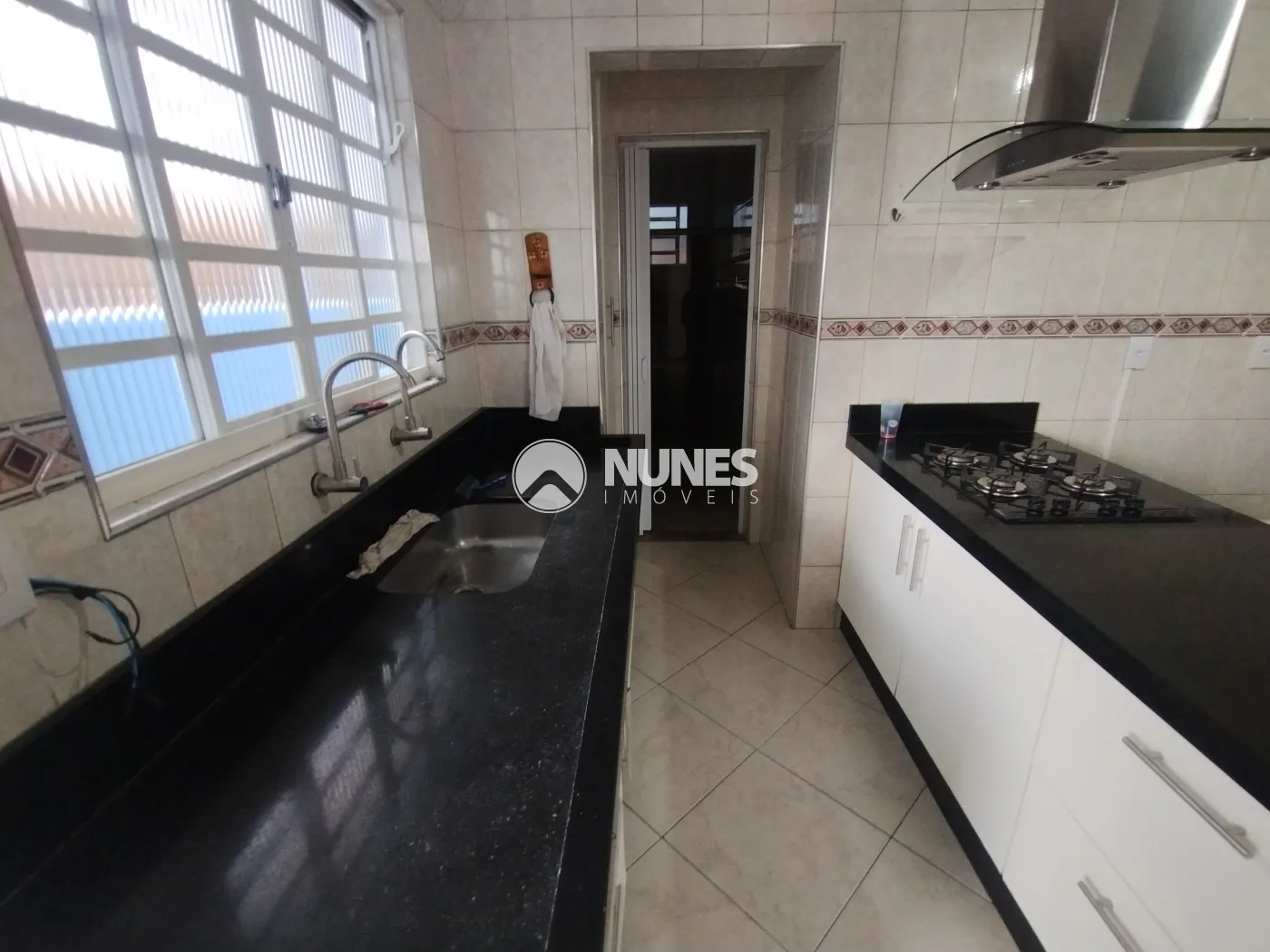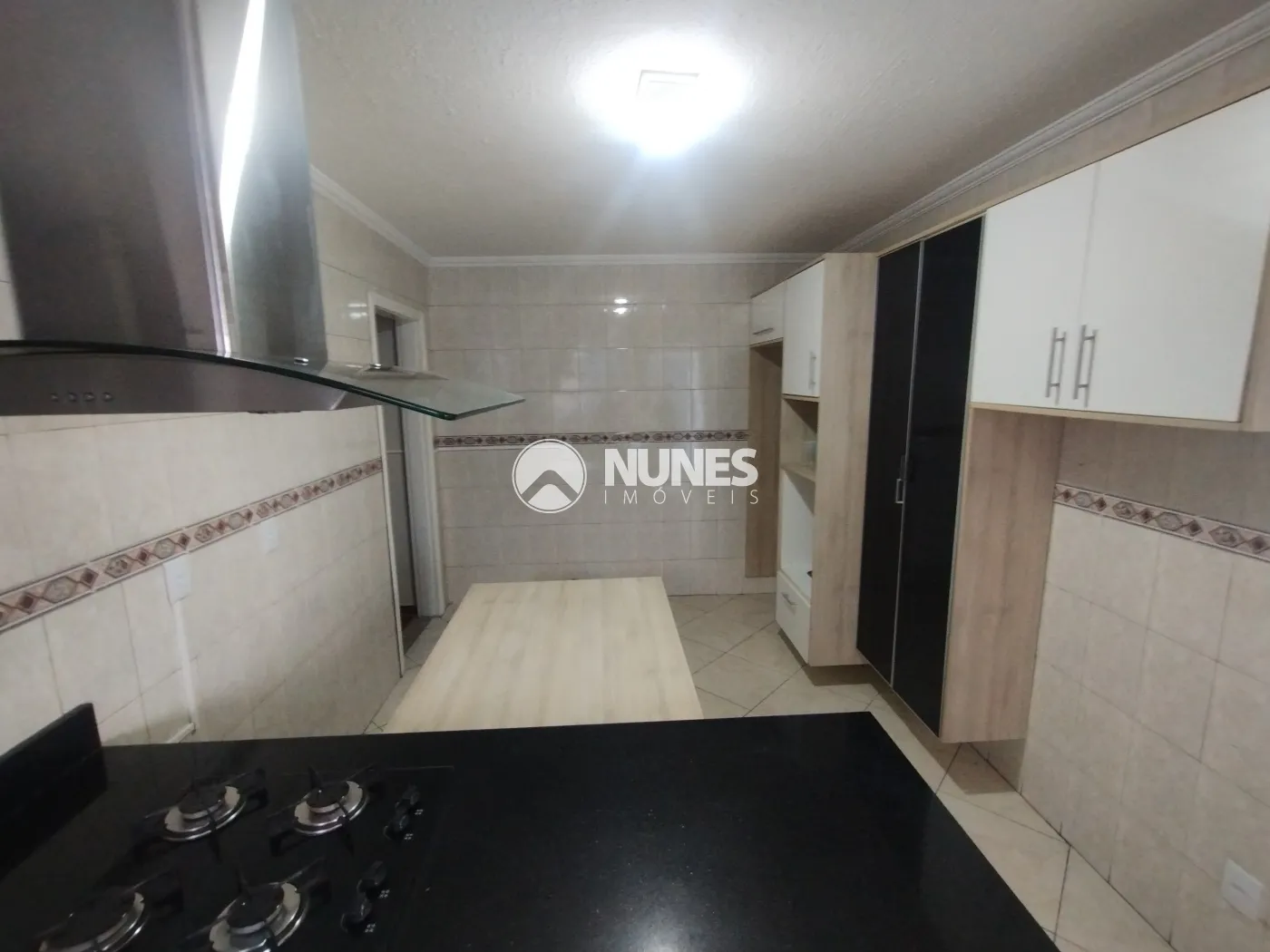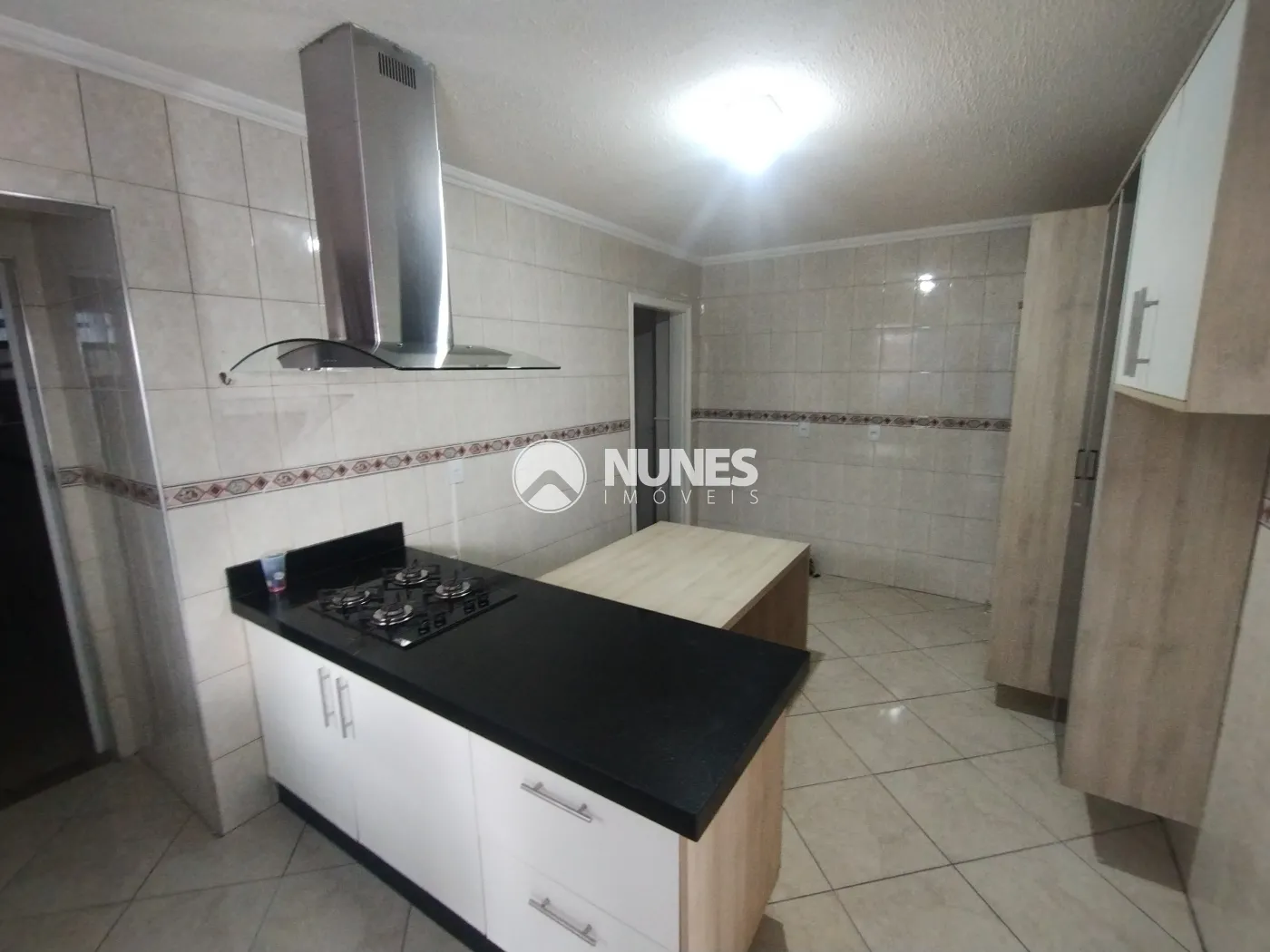 02 Cozinhas (Altos e Baixos) cozinha de baixo com armário, mesa, fogão e coifa