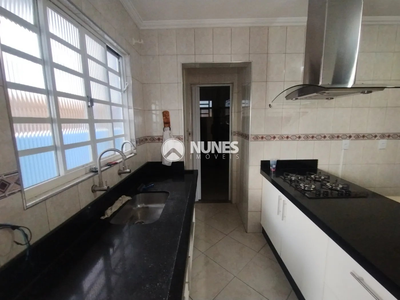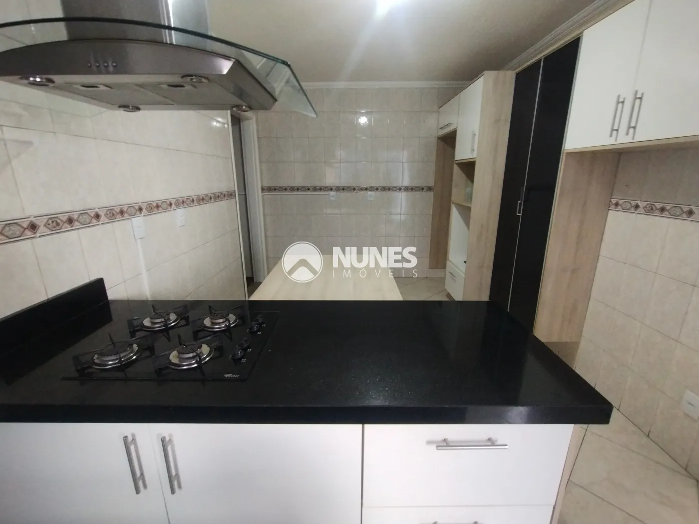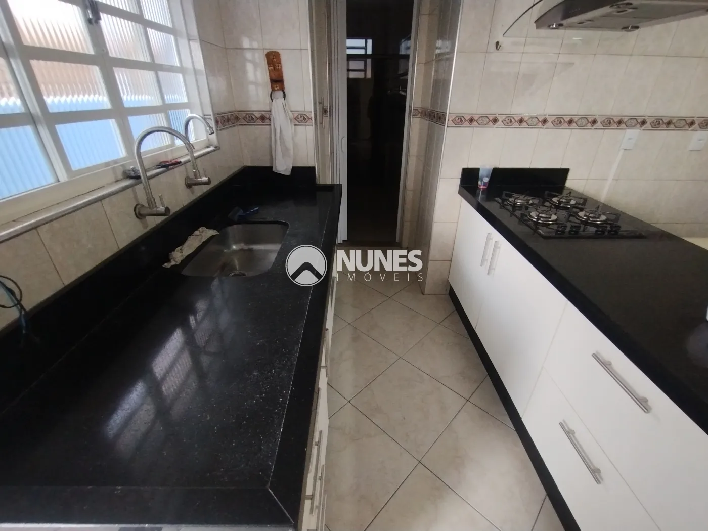 02 Cozinhas (Altos e Baixos) cozinha de baixo com armário, mesa, fogão e coifa