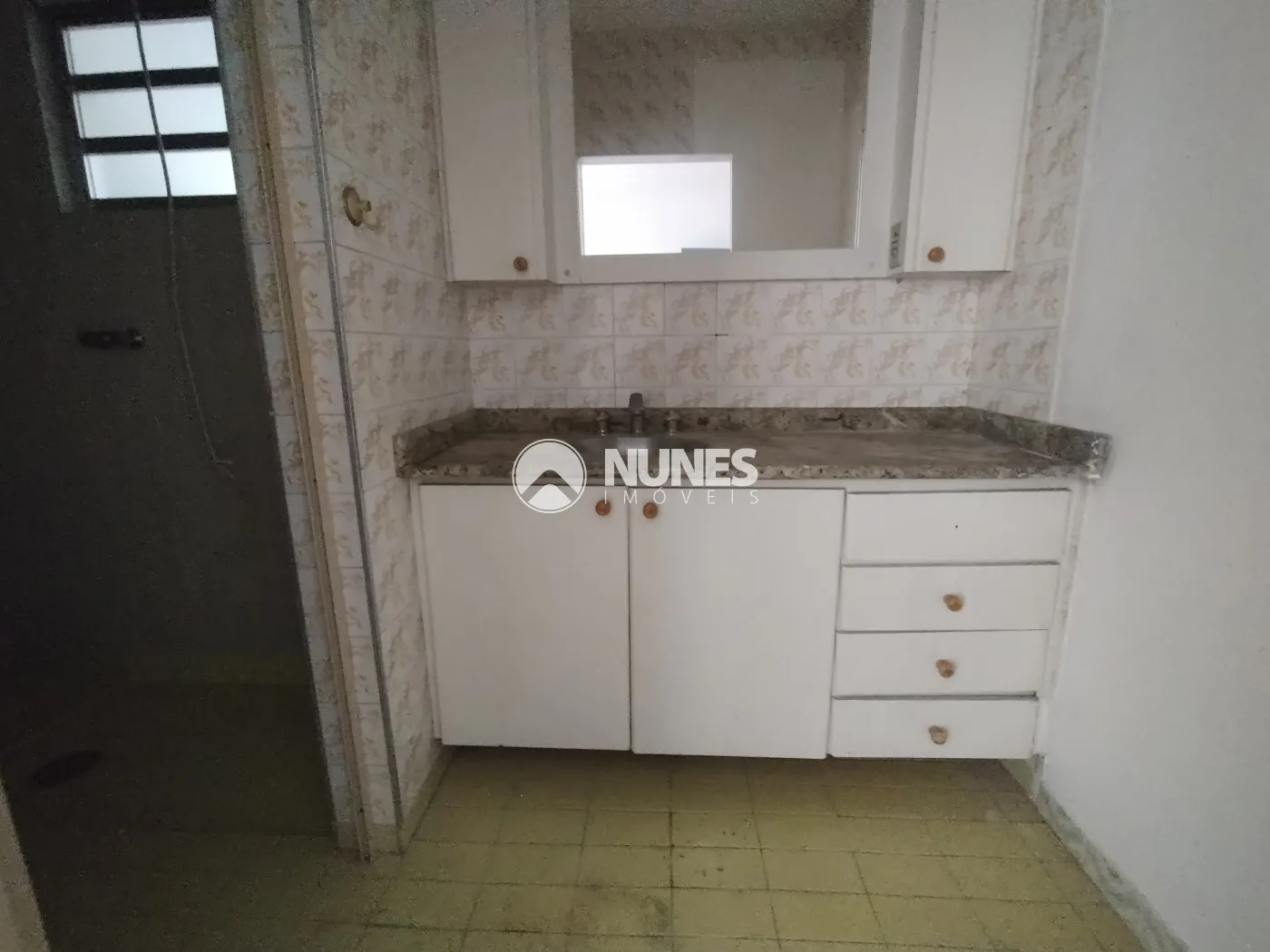 Cozinha com armários planejados e fogão (piso cerâmica)