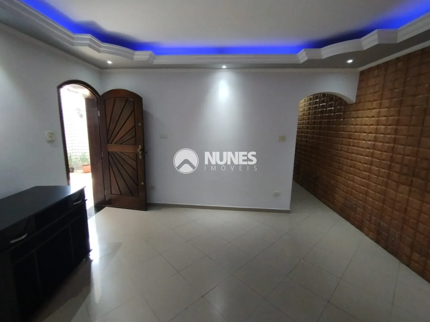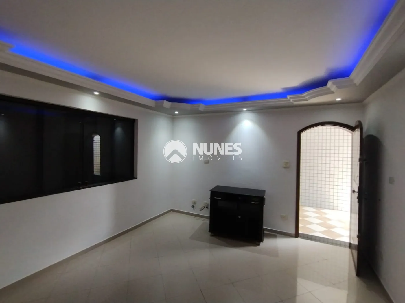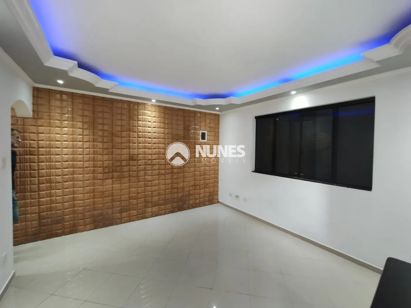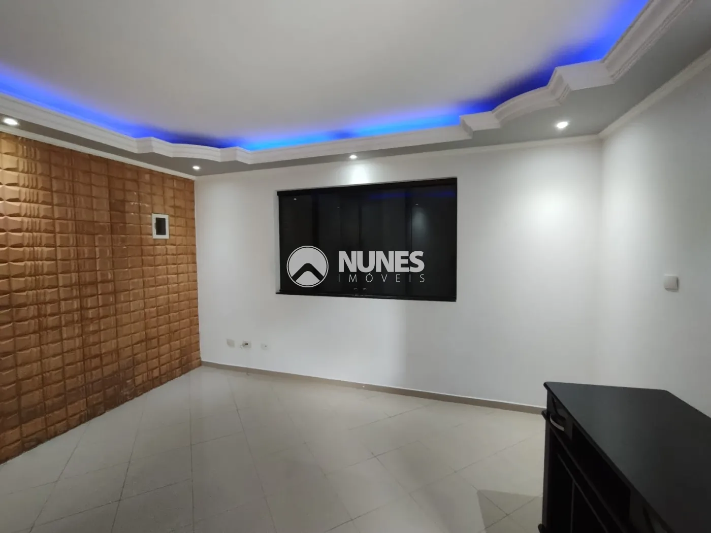 Sala com sanca de gesso, e rack (piso porcelanato)