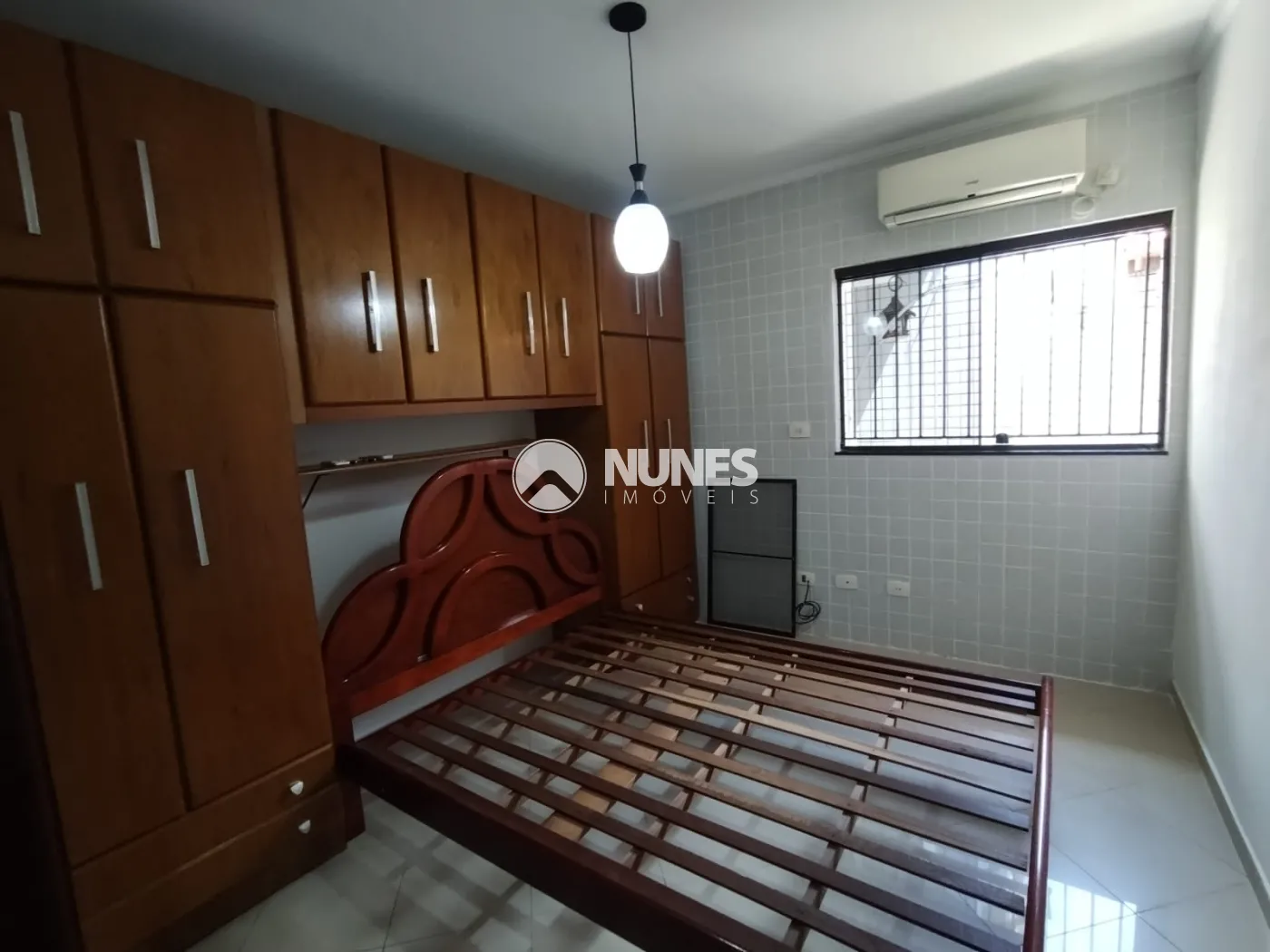 01 Dormitório com armário, cama e ar condicionado (piso porcelanato)