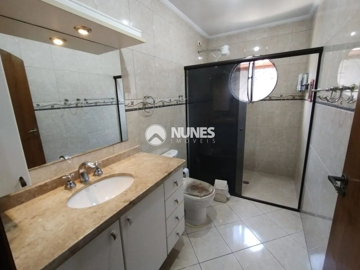 Banheiro com box de vidro (piso cerâmica)
