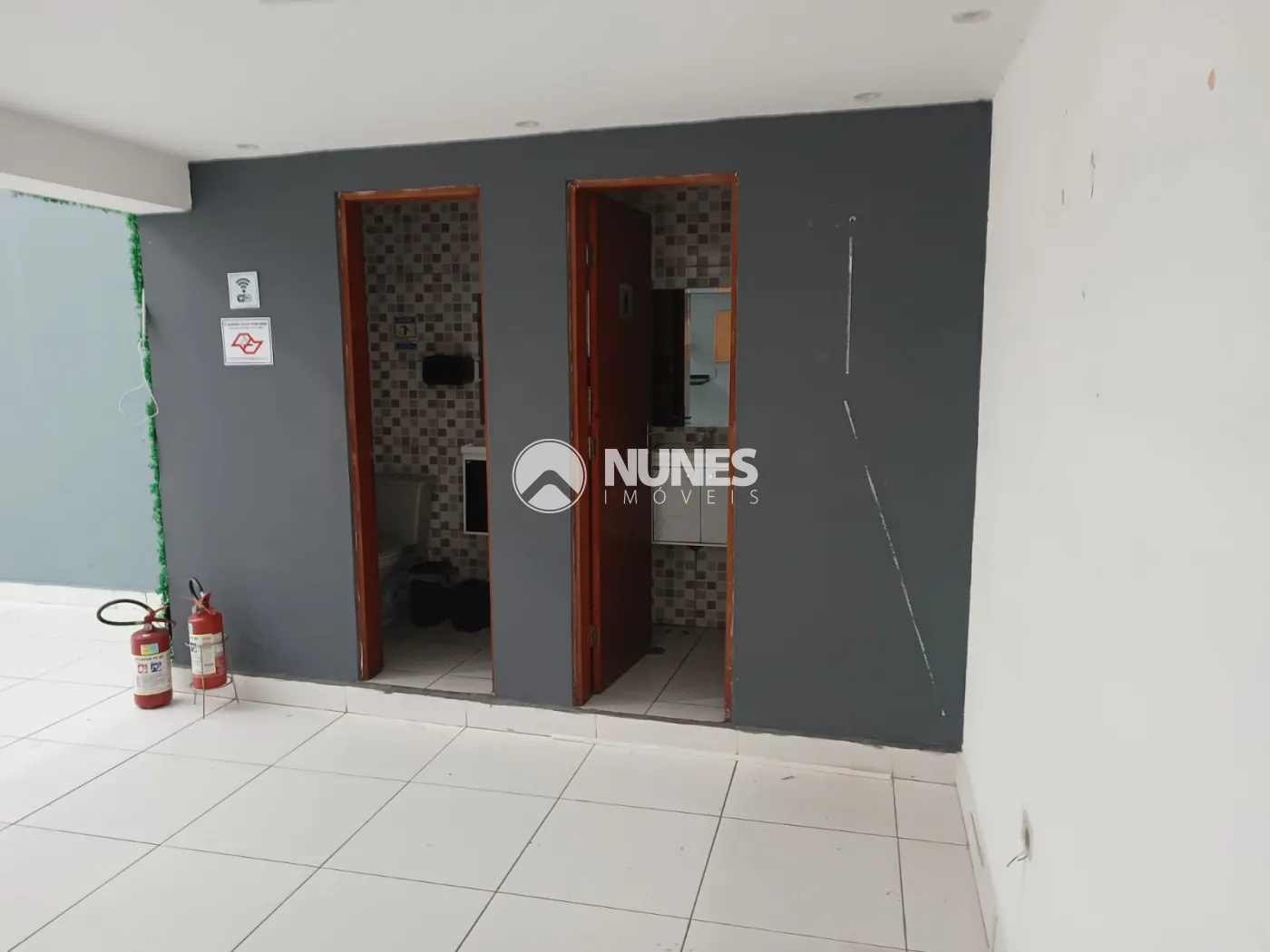 2 banheiros feminino/masculino com armário e espelho (piso cerâmica)
