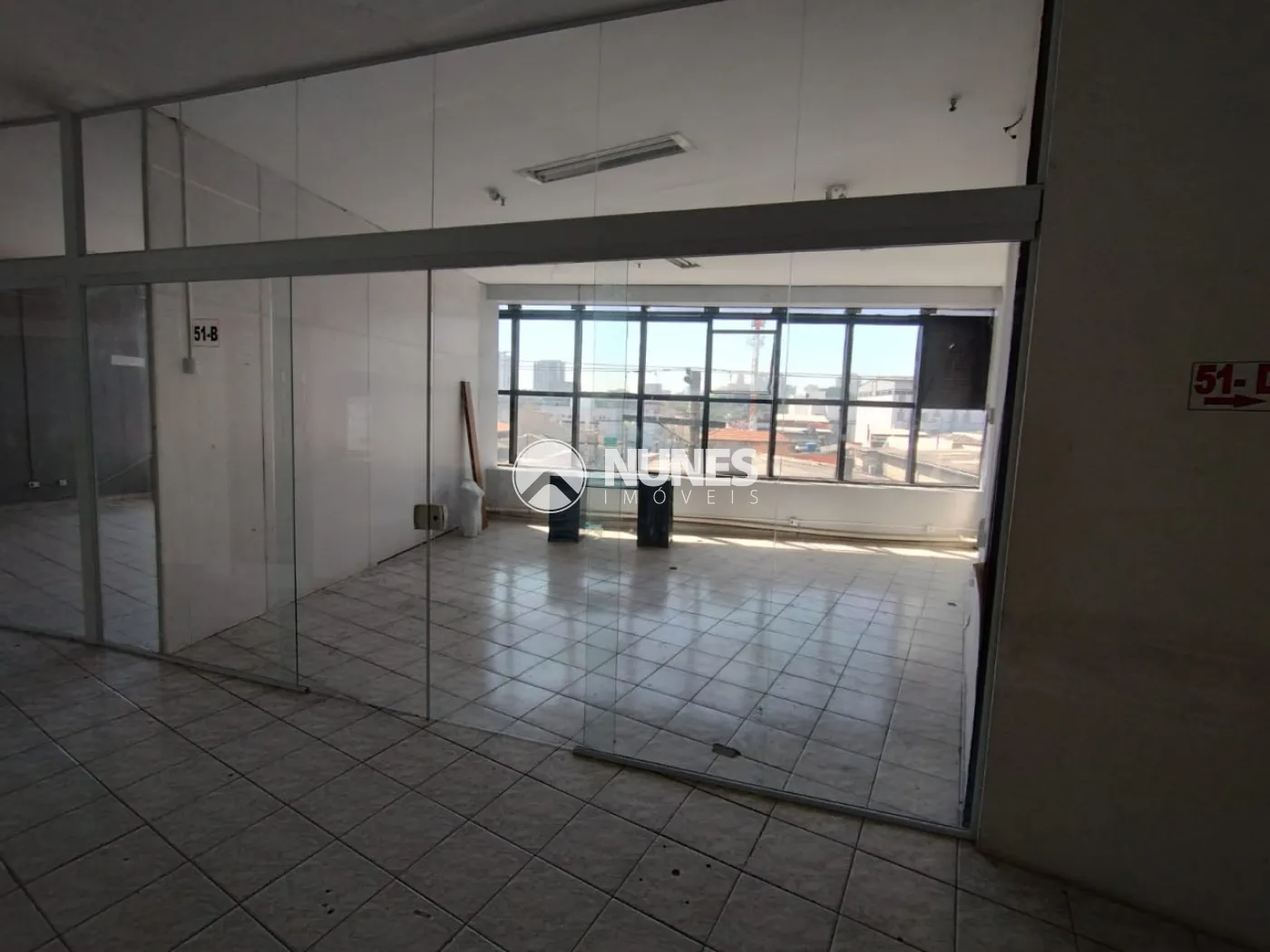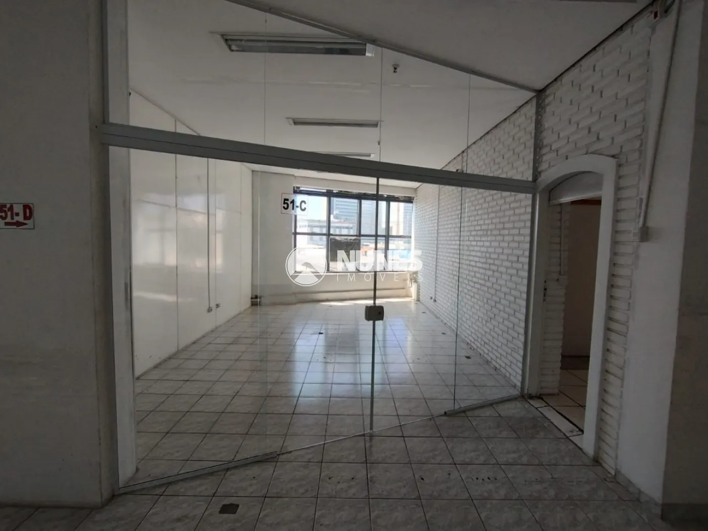 Divido em 04 salas com divisórias e porta de vidro
