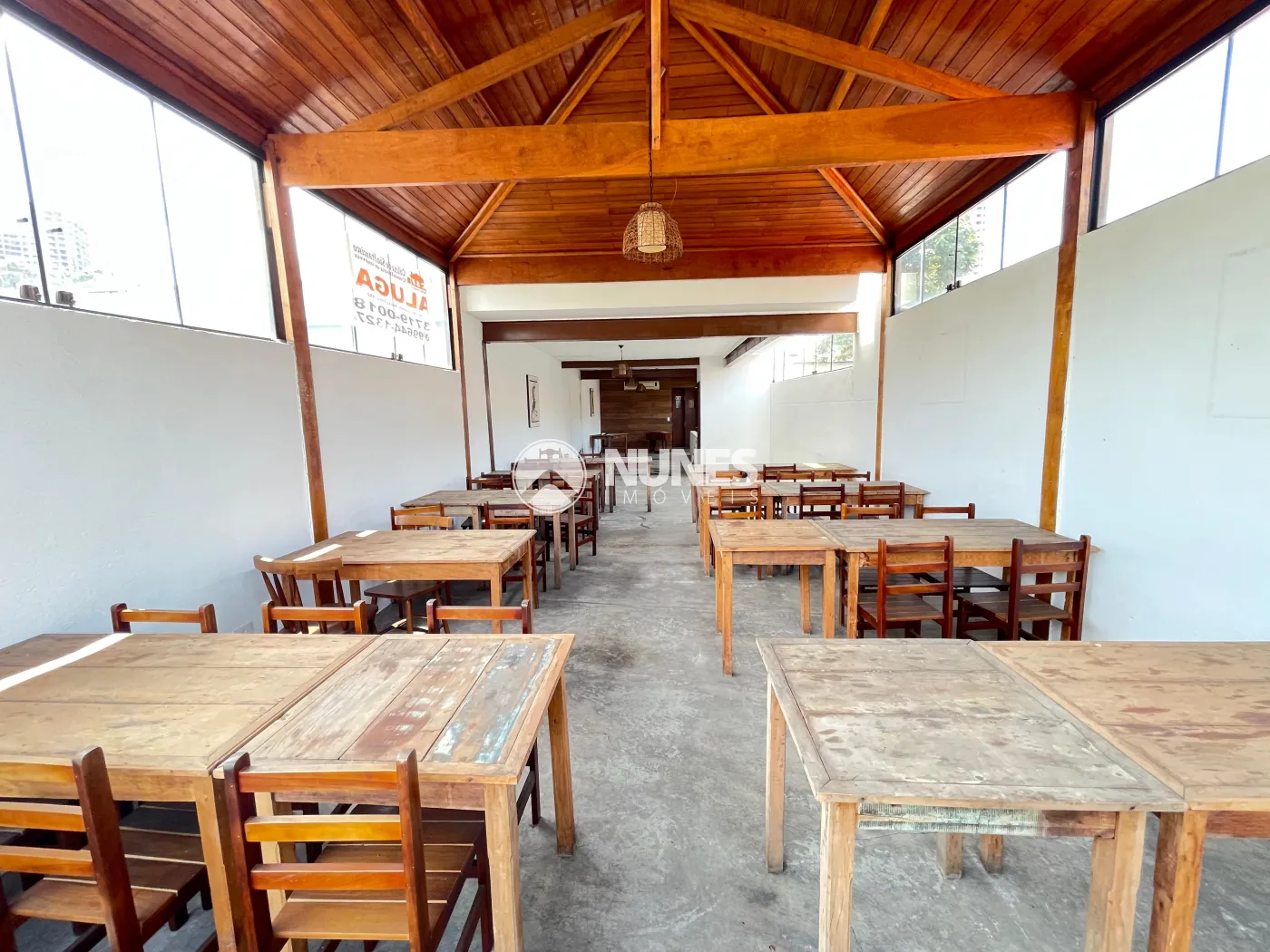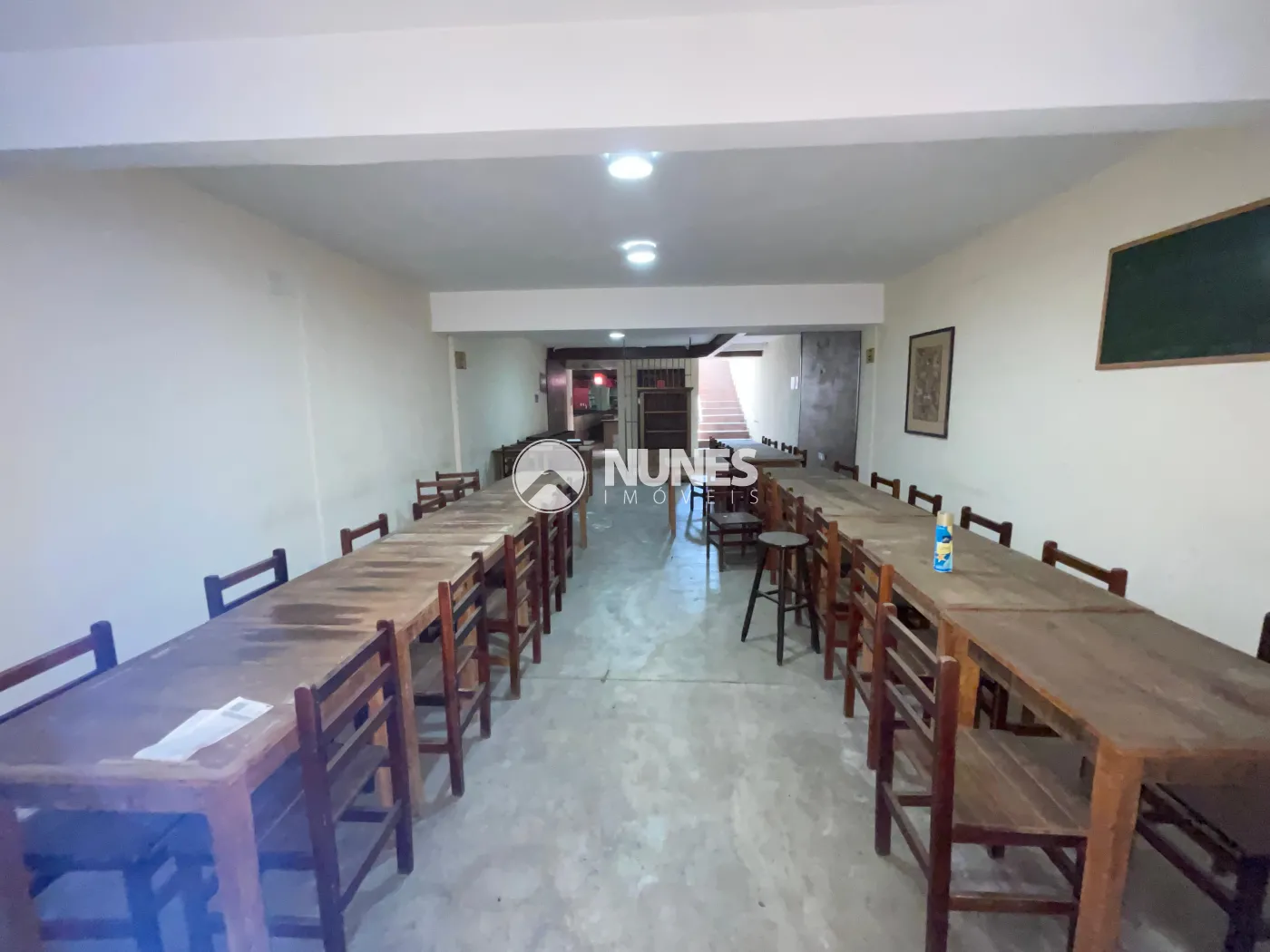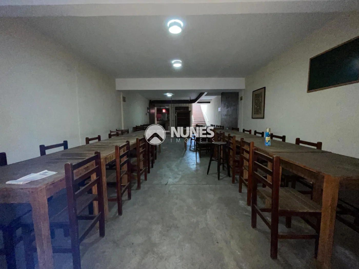Salão 1° andar 87,09m² com mesas e cadeiras (piso cimento)