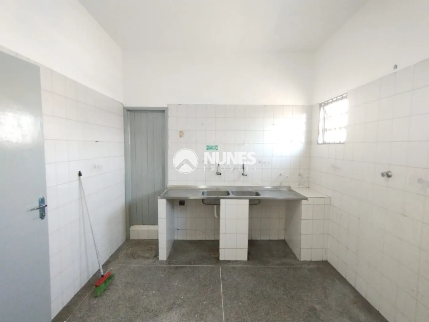 Cozinha/copa superior: 14 m² (piso granelito) com pia dupla e 2 banheiros