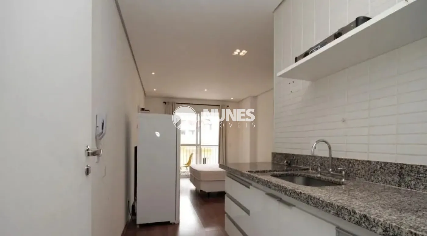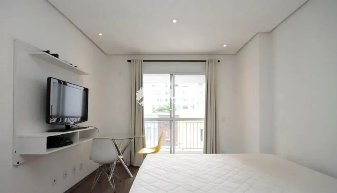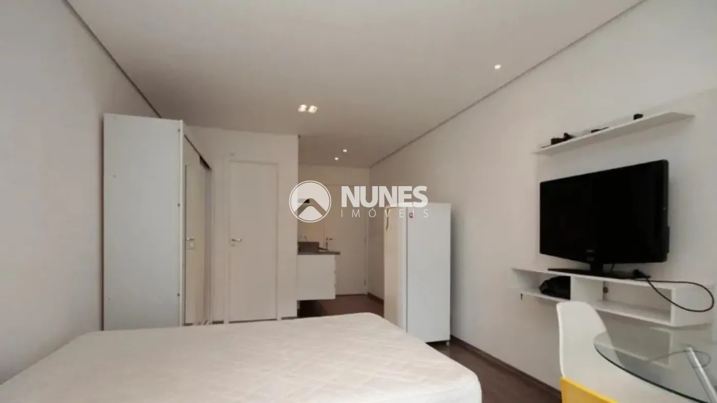 Apartamento Studio, todo mobiliado c/cama, armários, painel, TV, fogão, geladeira e ar condicionado (piso laminado)