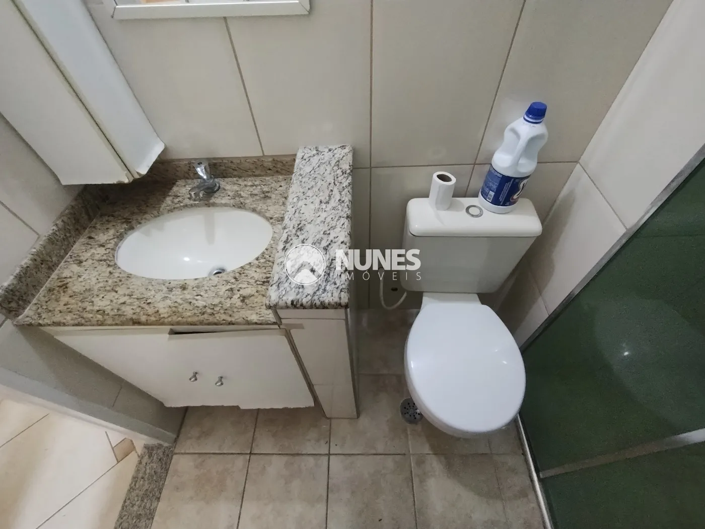 01 Banheiro com box de vidro e gabinete (piso cerâmica)