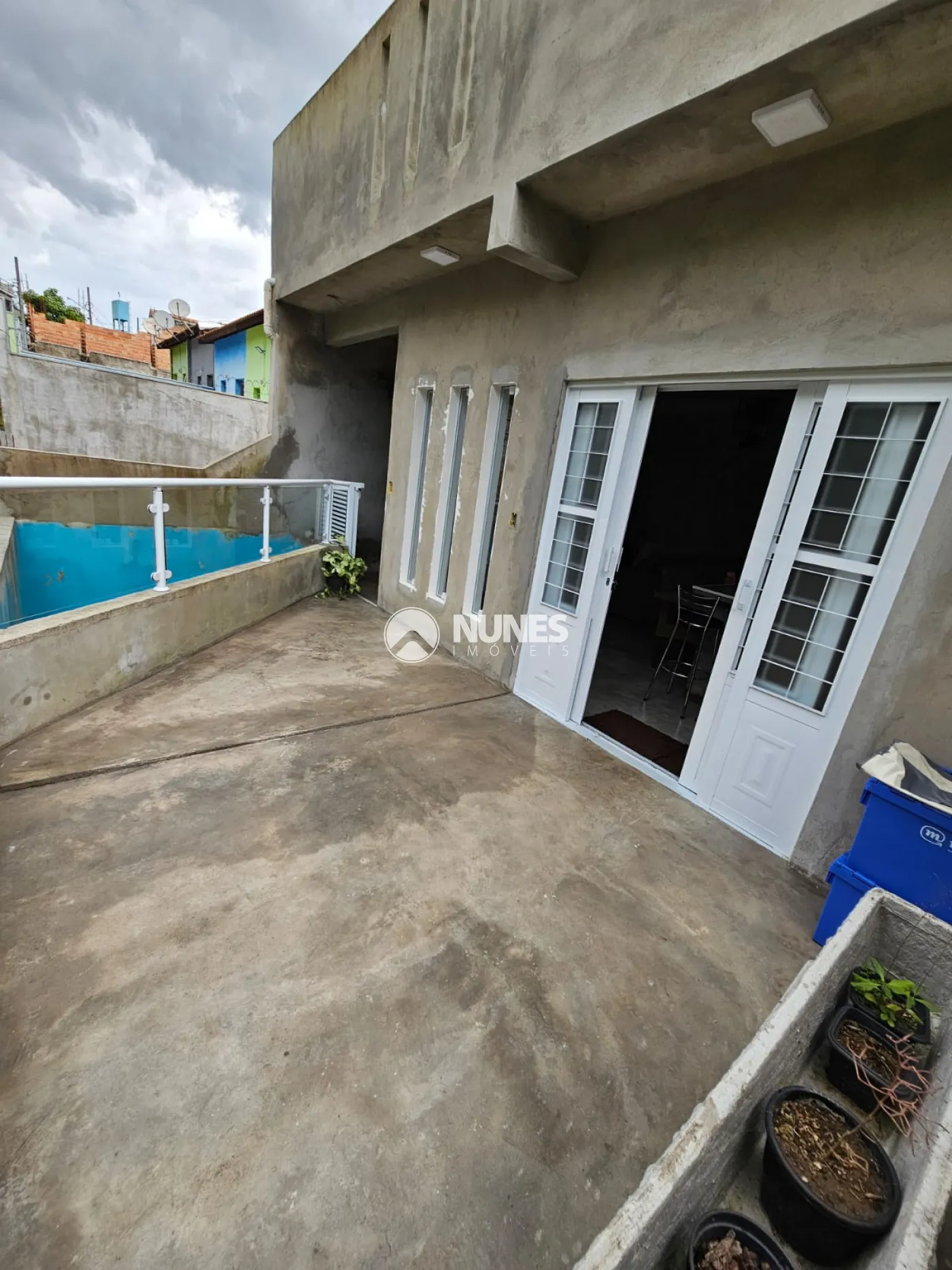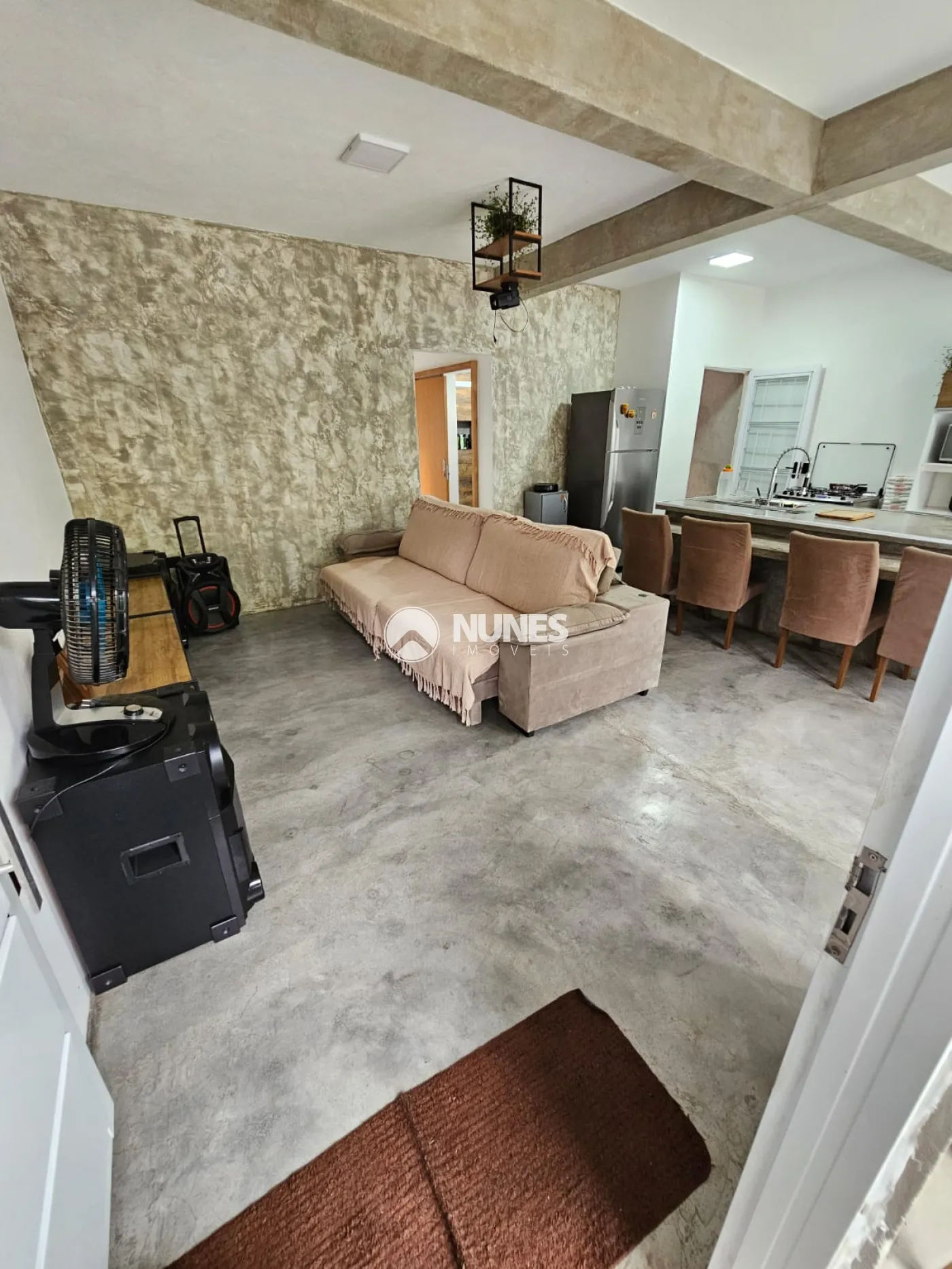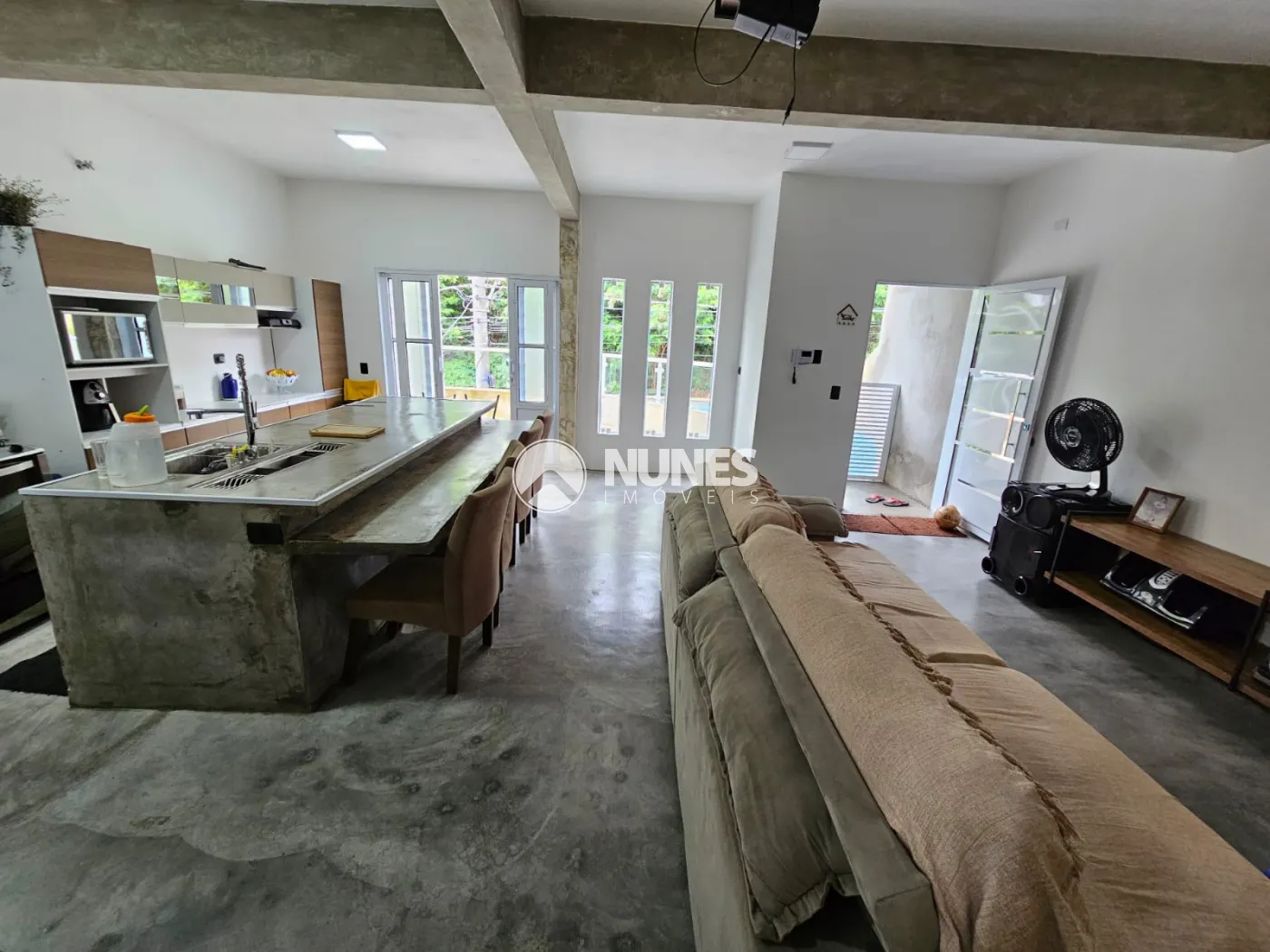 Casa principal inteiramente em cimento queimado, com sala e cozinha estilo americana com ilha, 03 dormitórios, 01 suíte com varanda, 02 banheiros, escritório, espaço para jardim de inverno, varanda na sala e terraço com cerca de 115m² com depósito e 01 banheiro.