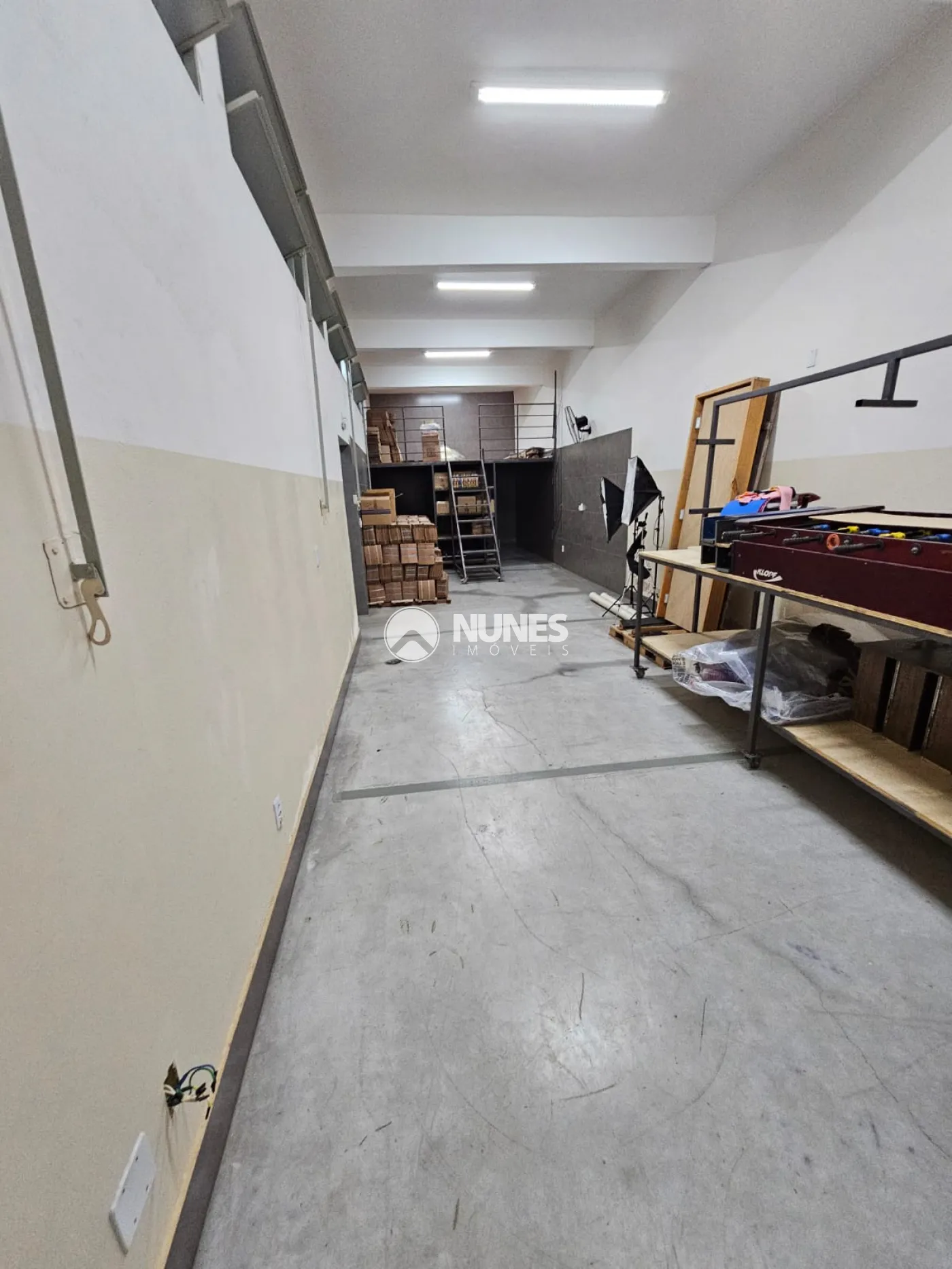 Subsolo: Salão de 110,00 m², garagem para até 04 carros, com 01 banheiro, mezanino com escada móvel e bancada de trabalho, 02 portas de acesso, desse carro até 03 metros de altura, portão automático.