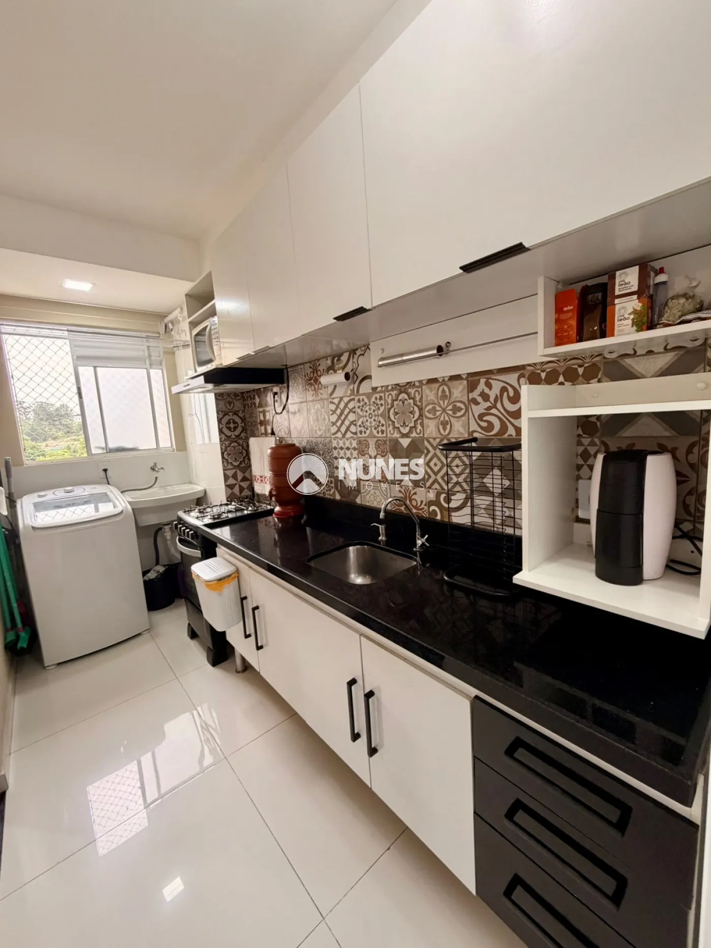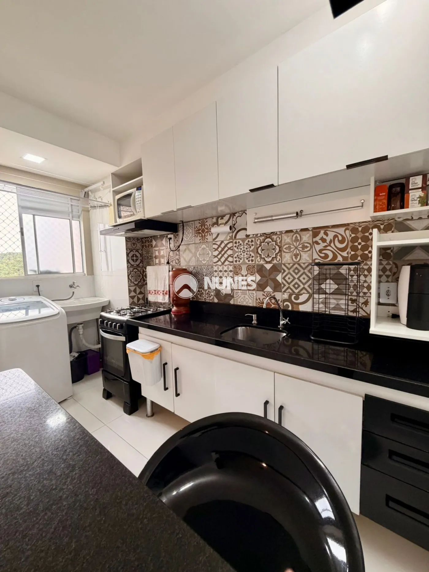 Cozinha ampla com balcão e pia em mármore preto São Gabriel (2m)