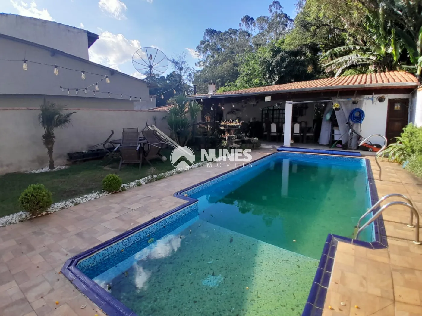 Piscina aquecida com dimensões de 7x3 metros.