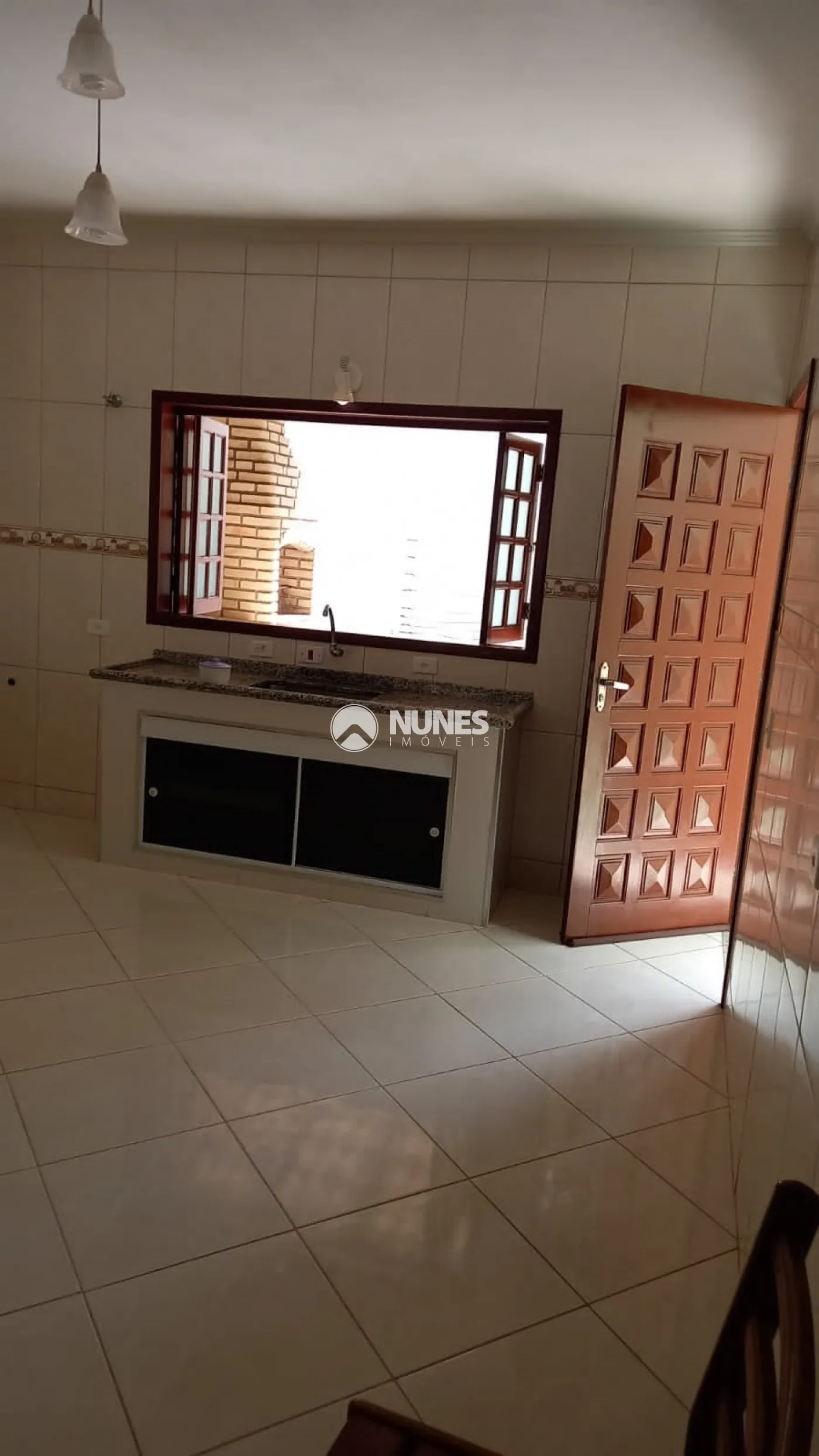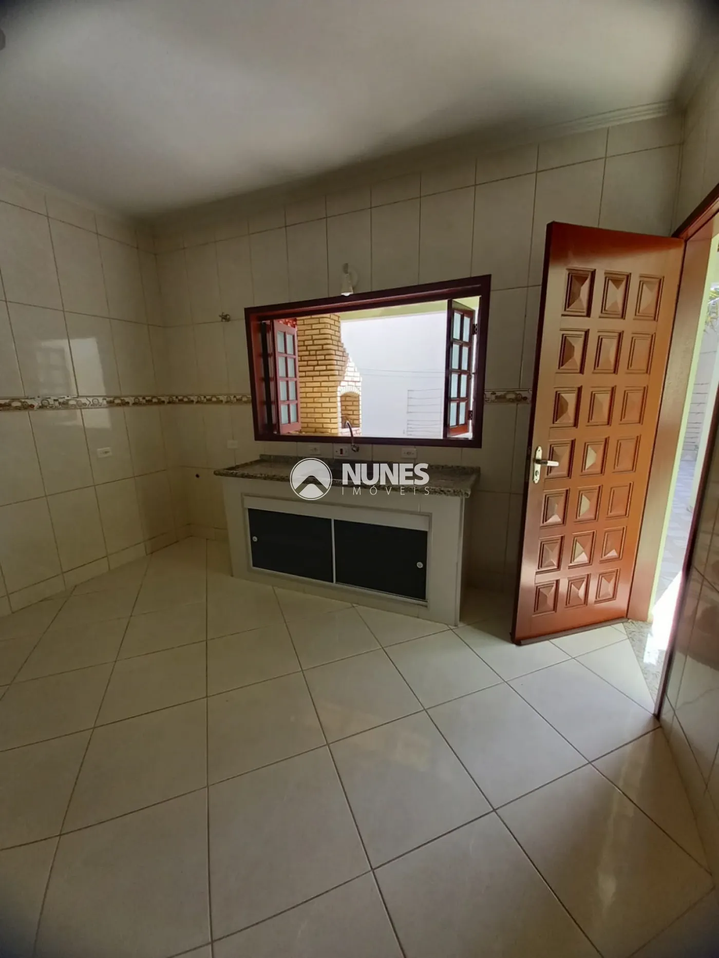Área de serviço e espaço coberto com churrasqueira.