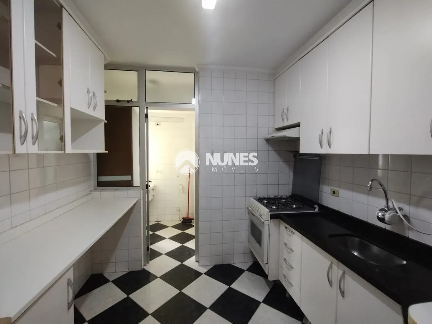 - Cozinha com armários, balcão e fogão (piso cerâmica)