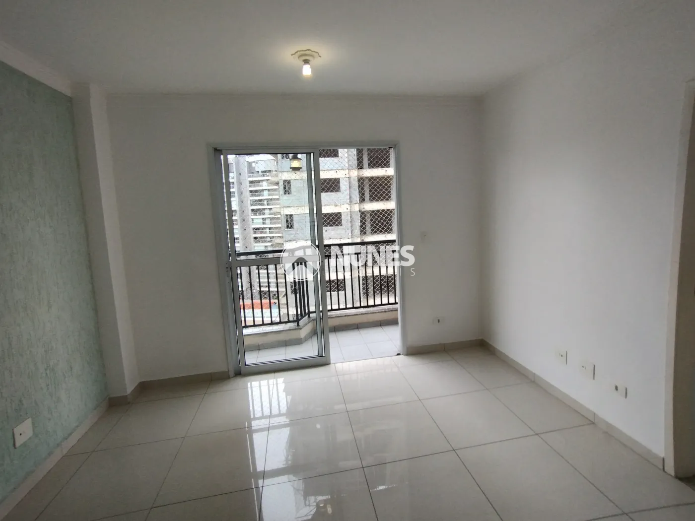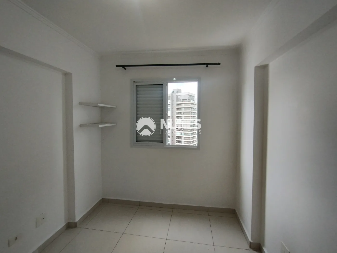 02 dormitórios (piso porcelanato) sendo 01 com guarda roupas, sacada e suíte com box, Sala com sacada (piso porcelanato), Cozinha com armários (piso cerâmica), Banheiro com box de vidro (piso cerâmica), Área de serviço (piso cerâmica).
