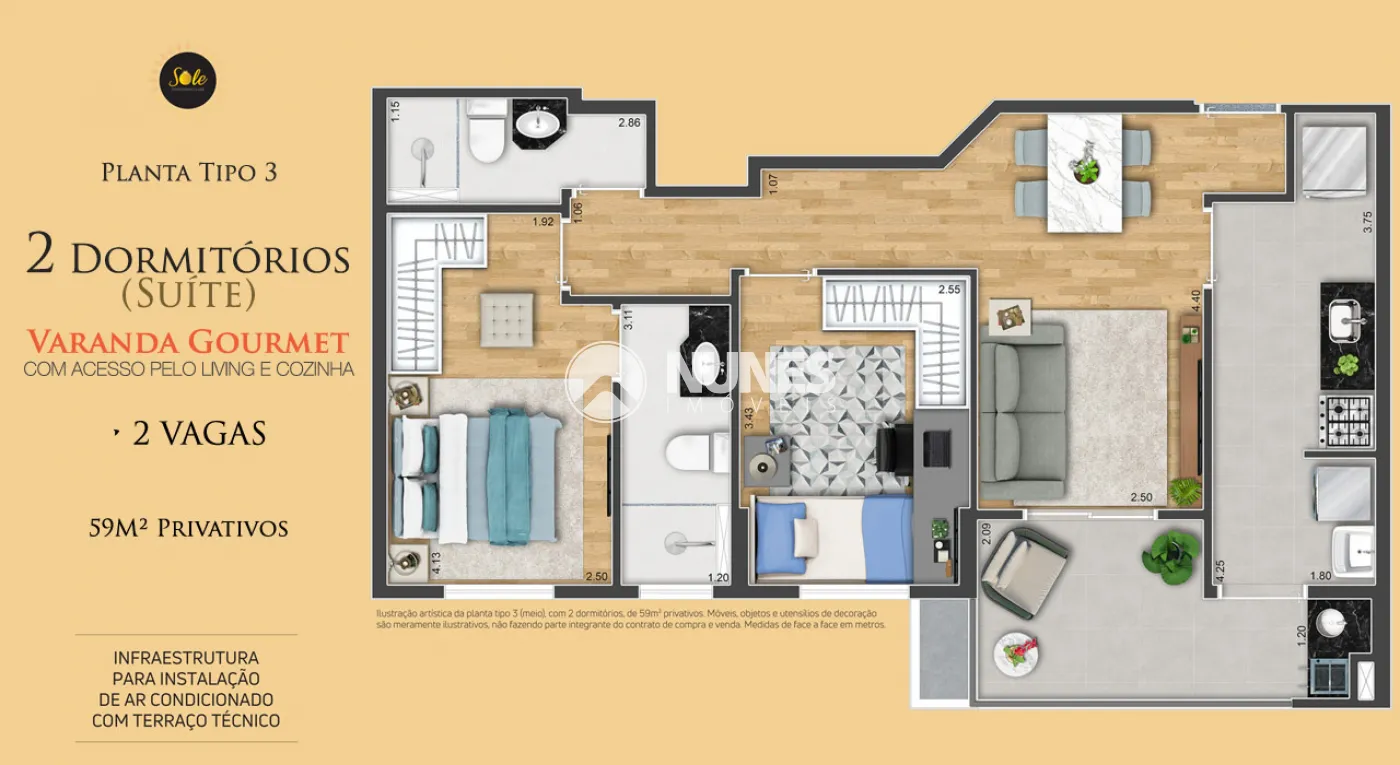 Apartamento 3 Dorms com 1 Suíte e 2 Vagas no Sole Bela Vista, OSASCO