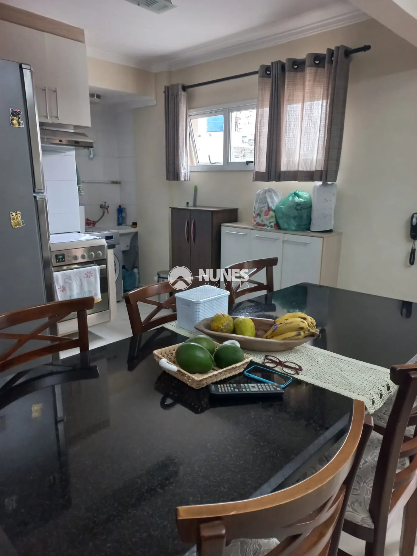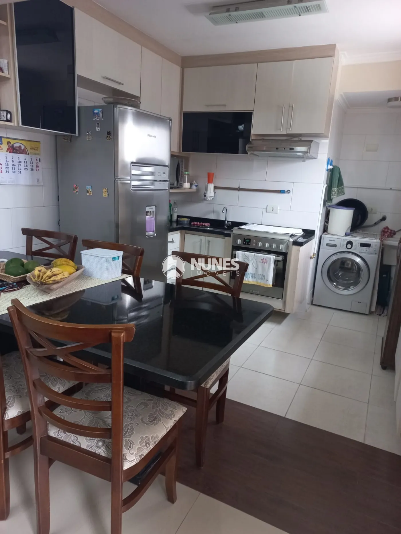 Cozinha integrada com planejados e lavanderia.