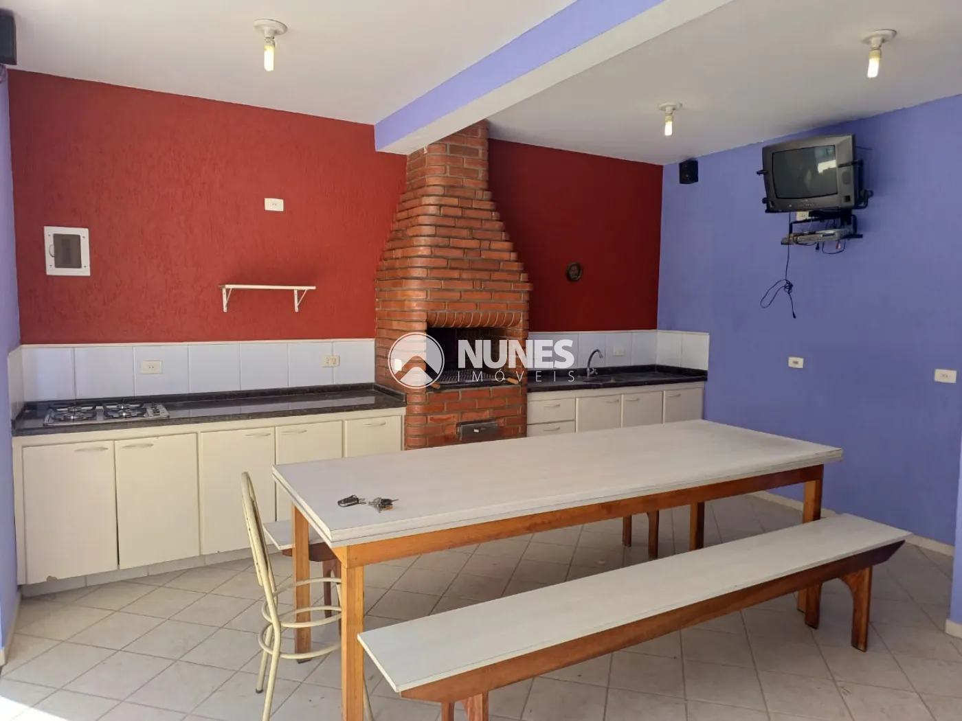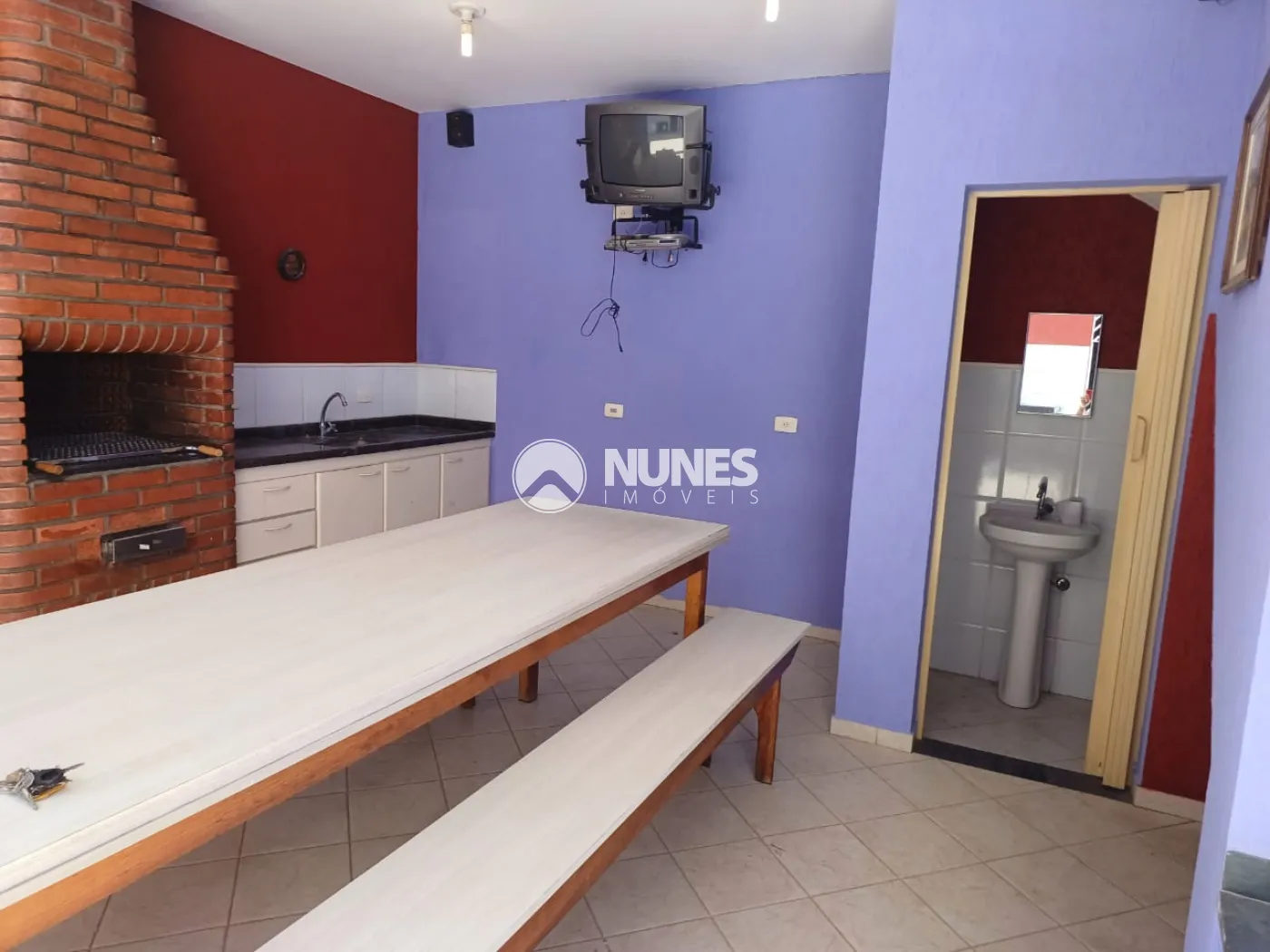 Espaço de churrasqueira com banheiro, ideal para momentos de lazer e entretenimento.