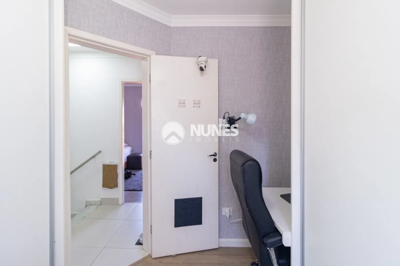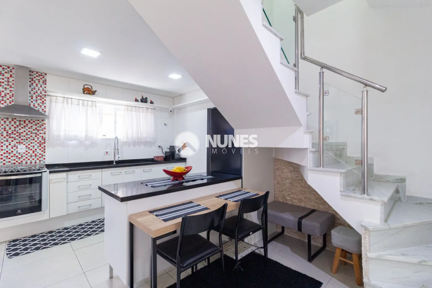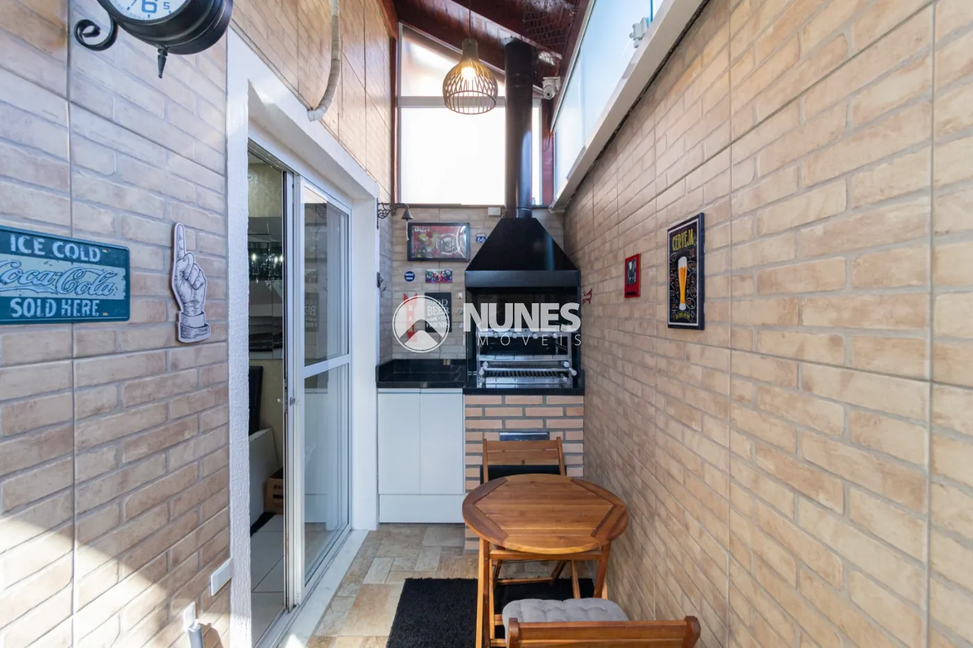 Condomínio com 4 sobrados, sistema de cerca elétrica, churrasqueira, salão de festas e vaga para visitantes.