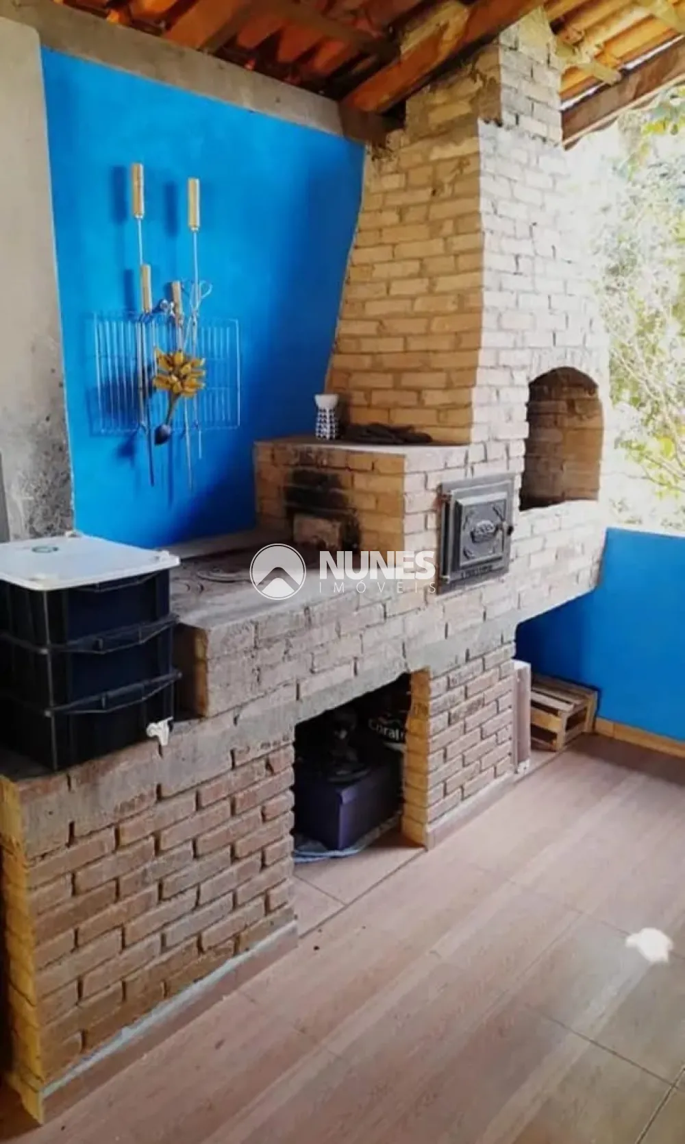 Área Gourmet com churrasqueira, fogão a lenha e forno