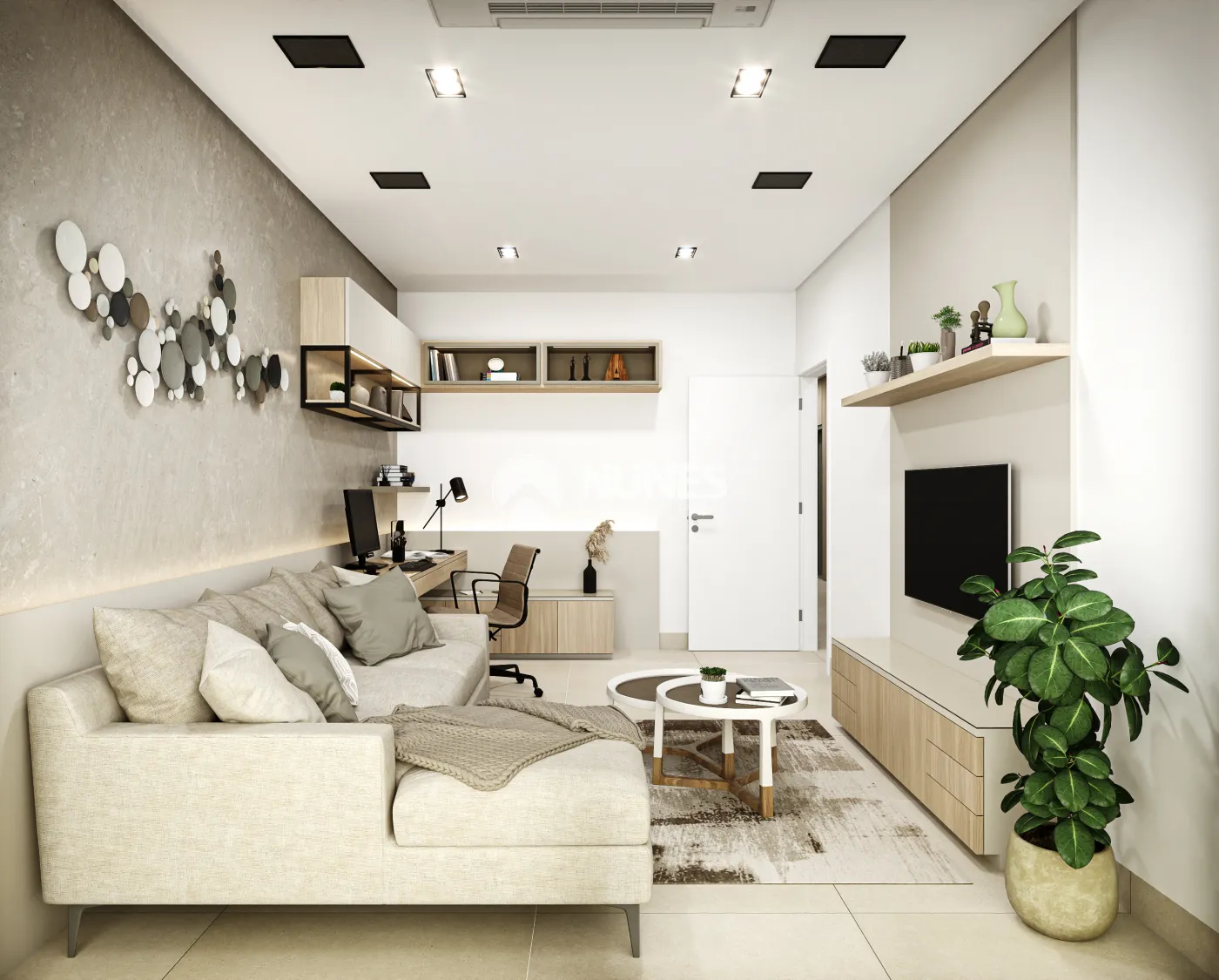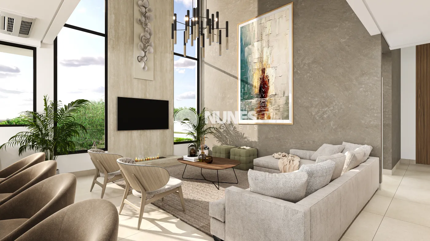 9) Living integrado com pé-direito duplo.