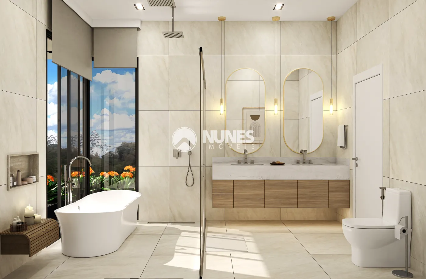 13) Banho master com banheira de imersão com vista para a mata.