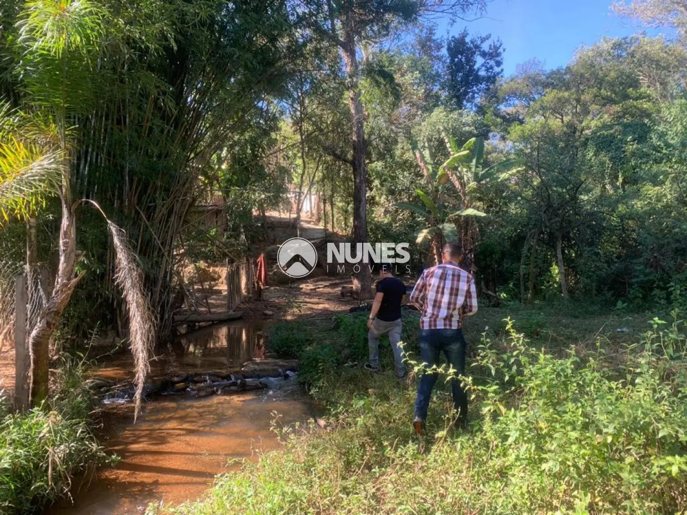 Riacho com água corrente no terreno